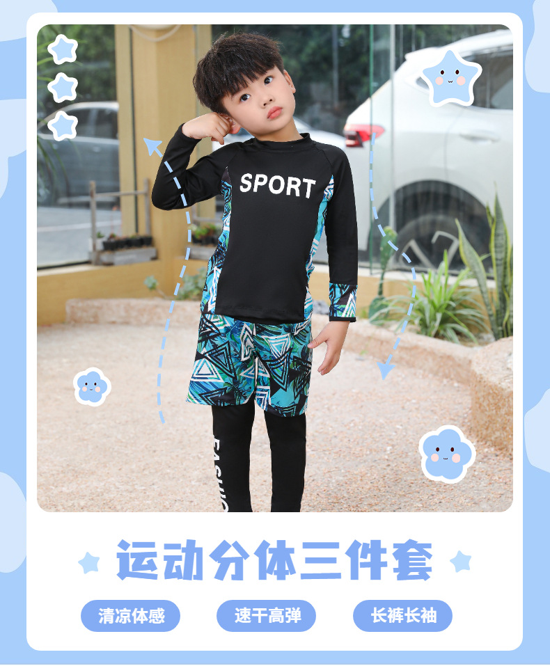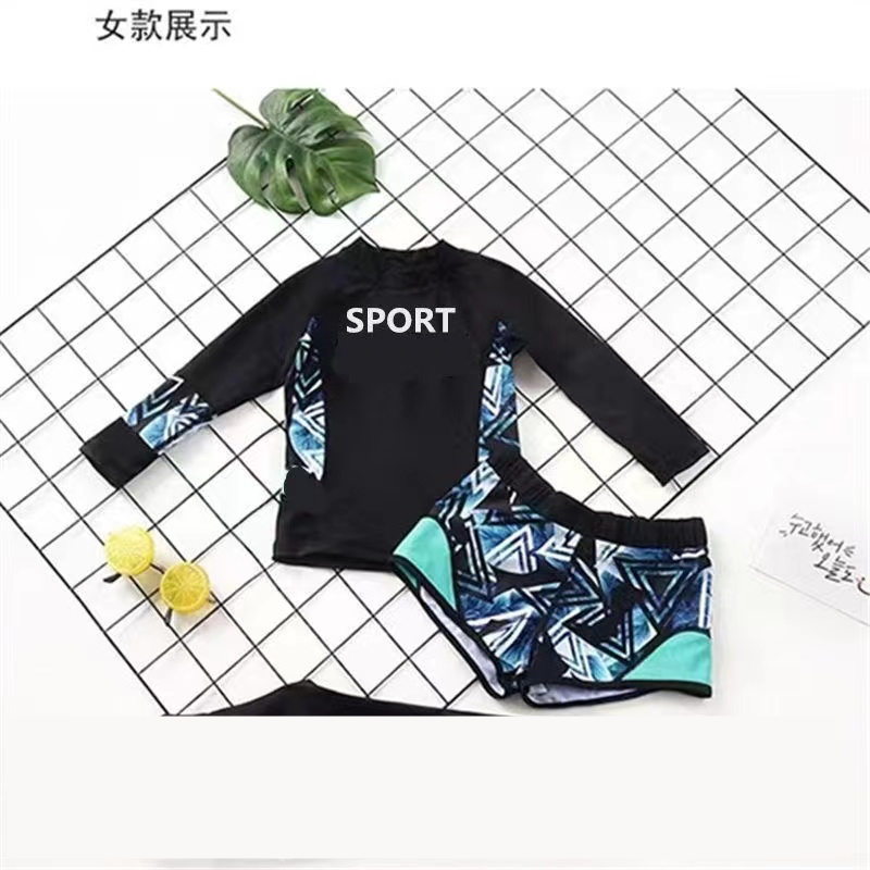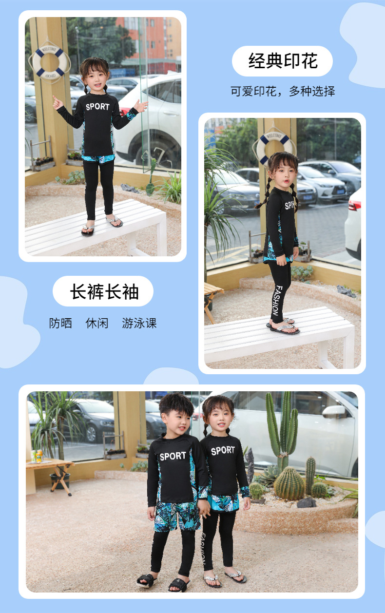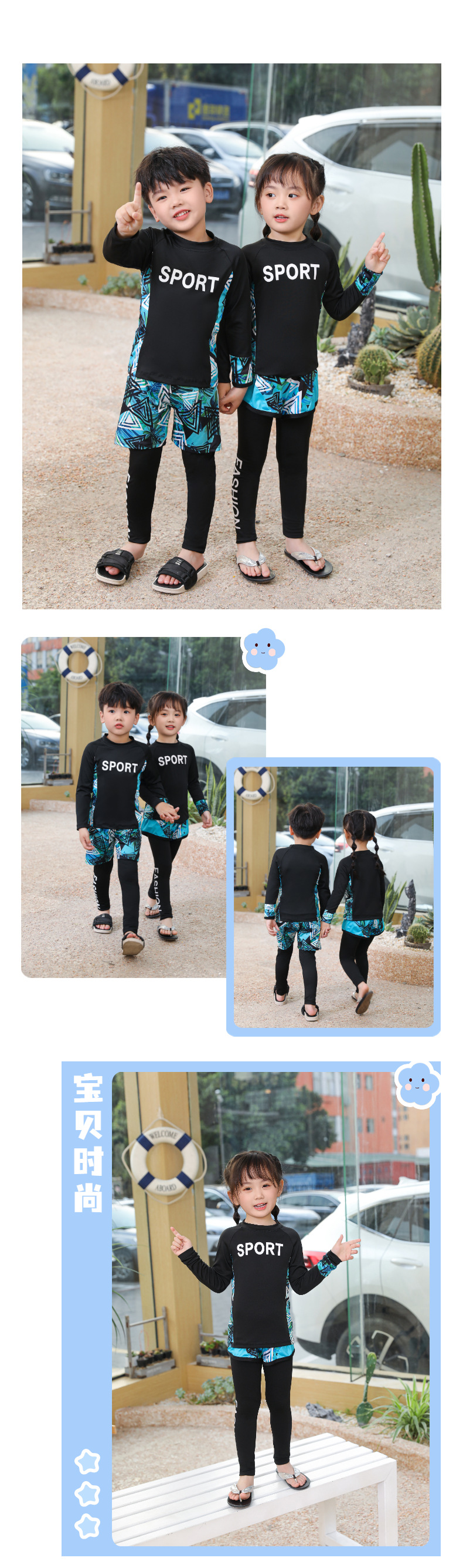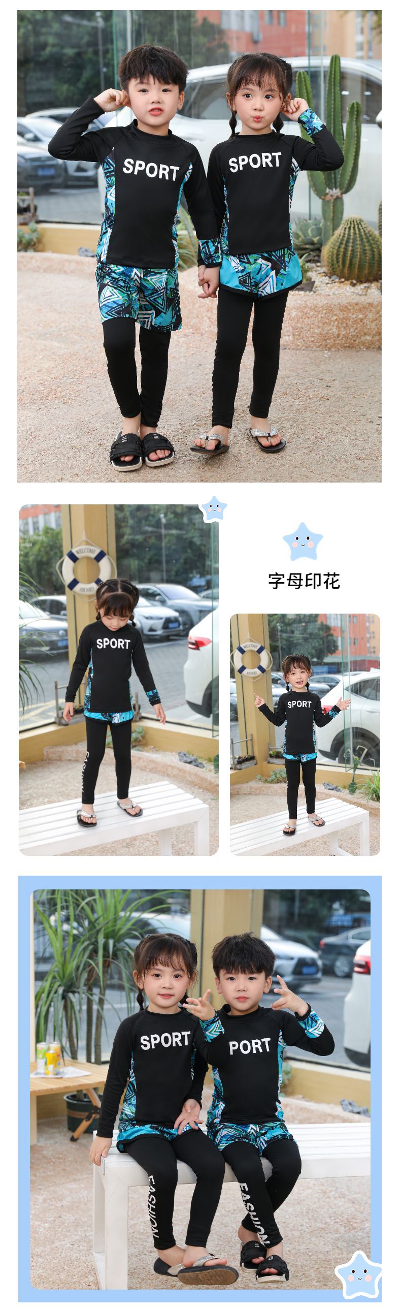 새로운 어린이 수영복 소년과 소녀 분할 쓰리 피스 바지 긴팔 보수적 인 태양 보호 스포츠 수영복 4-18 세