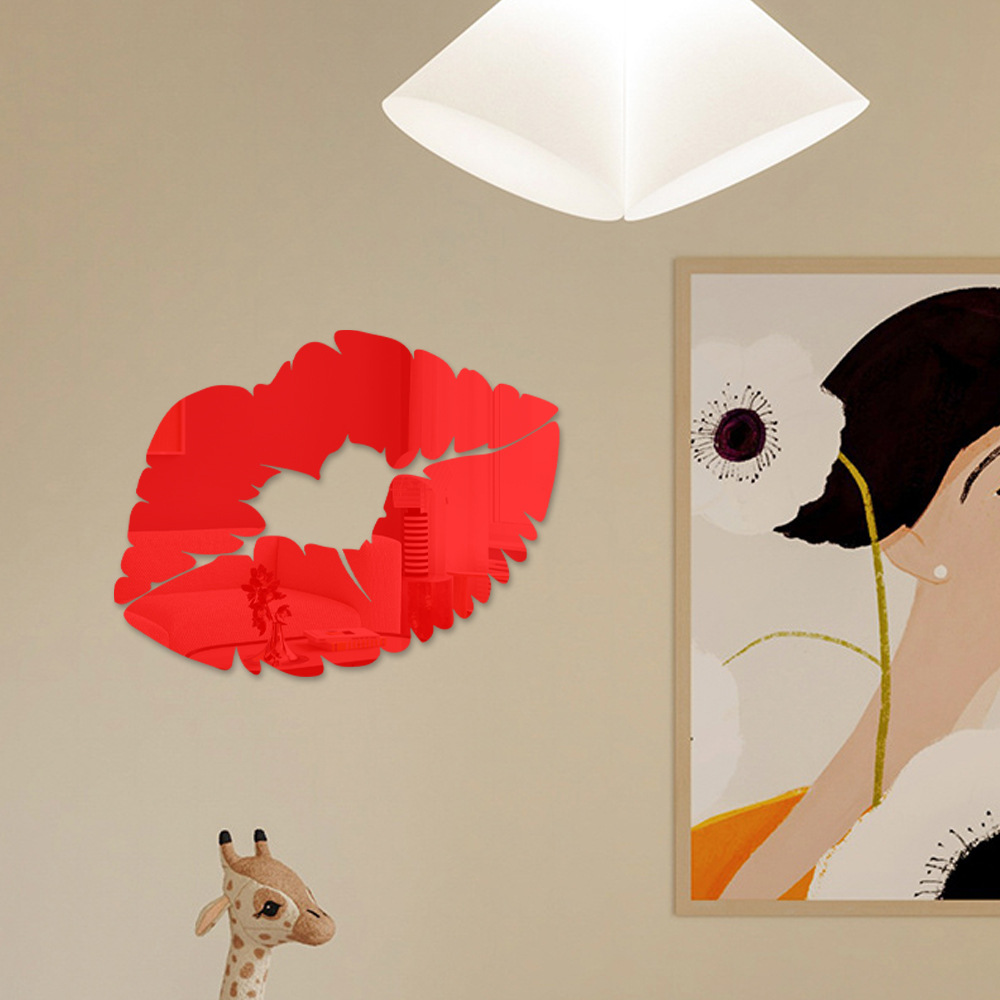 JM3129 크로스 보더 섹시한 빨간 립 미러 벽 스티커 3 차원 아크릴 자체 접착 장식 방 침실 낭만적 인 벽 장식