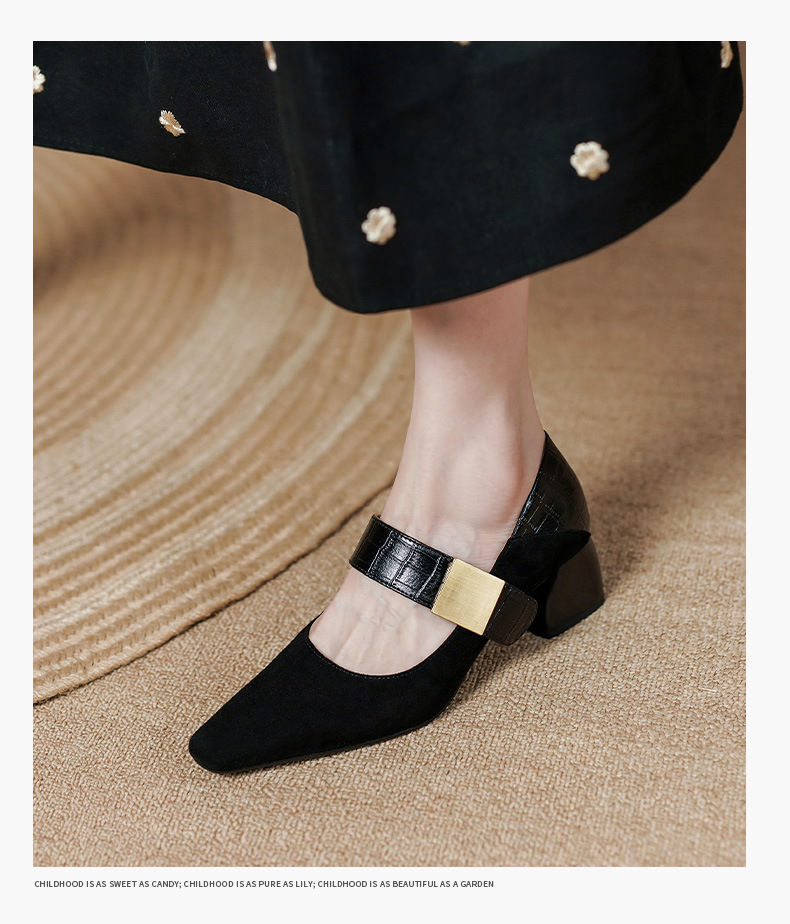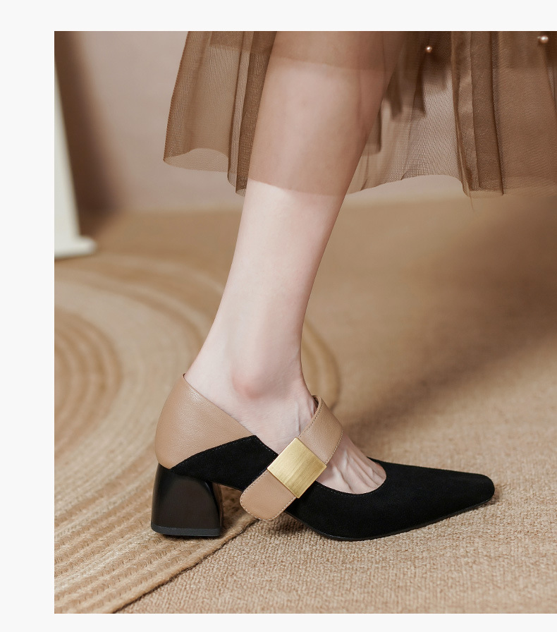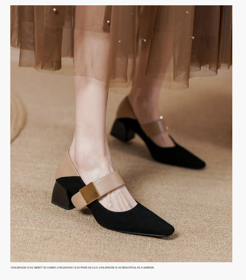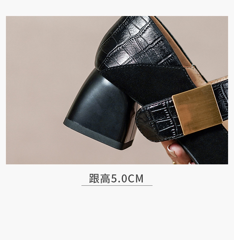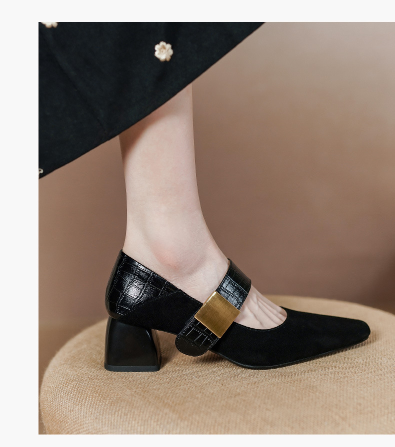 프랑스 스타일 우아한 작은 사각형 머리 양각 가죽 패션 모든 매치 하이힐 여성용 2023 봄과 가을 영국 스타일 청키 힐 싱글 레이어 신발스토어 가기
