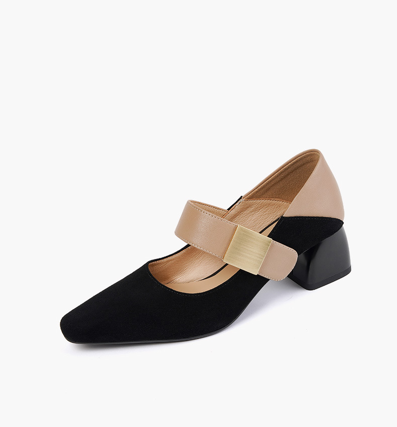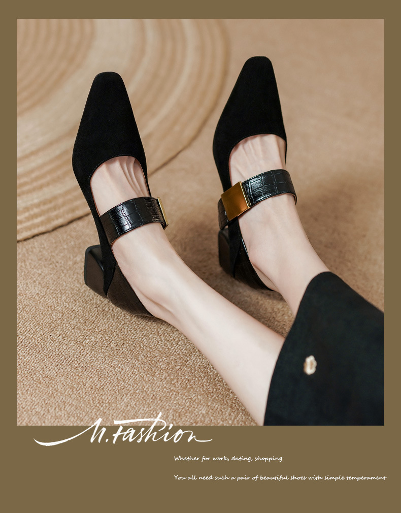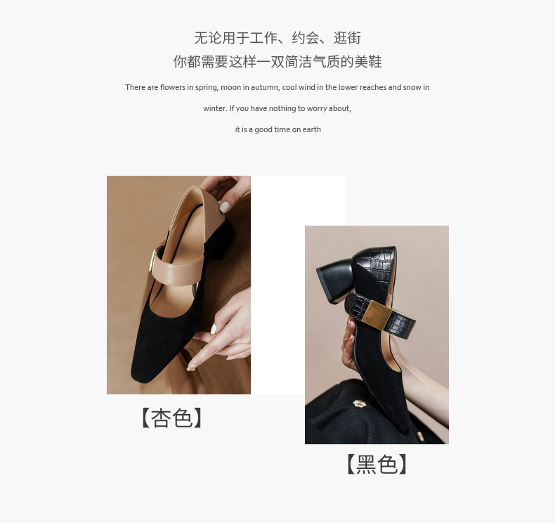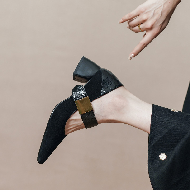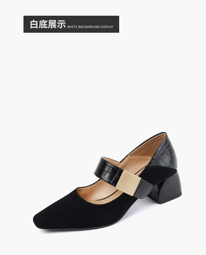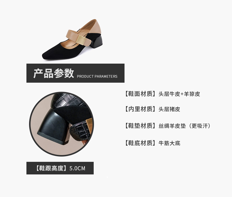 프랑스 스타일 우아한 작은 사각형 머리 양각 가죽 패션 모든 매치 하이힐 여성용 2023 봄과 가을 영국 스타일 청키 힐 싱글 레이어 신발스토어 가기