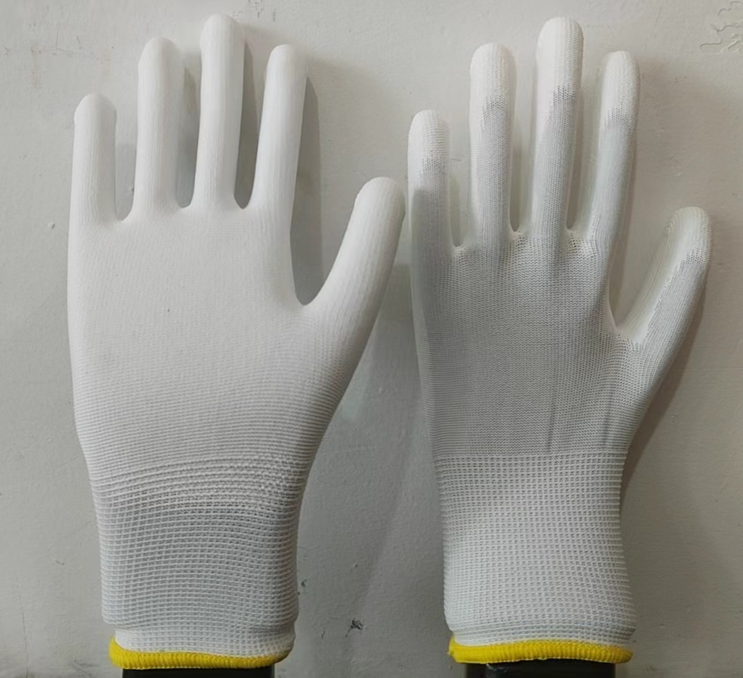 • 흰색 노란색 가장자리 PU 코팅 손바닥 S 코드