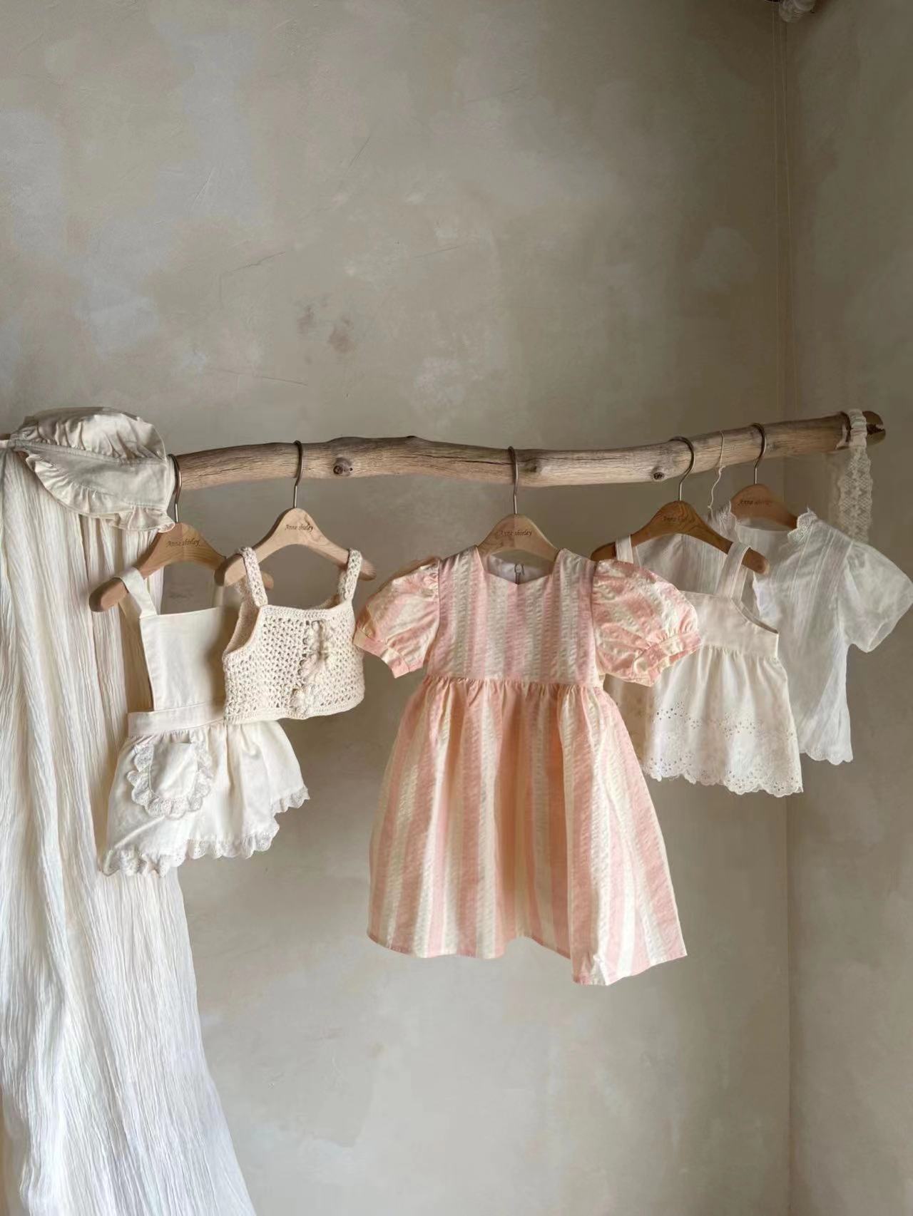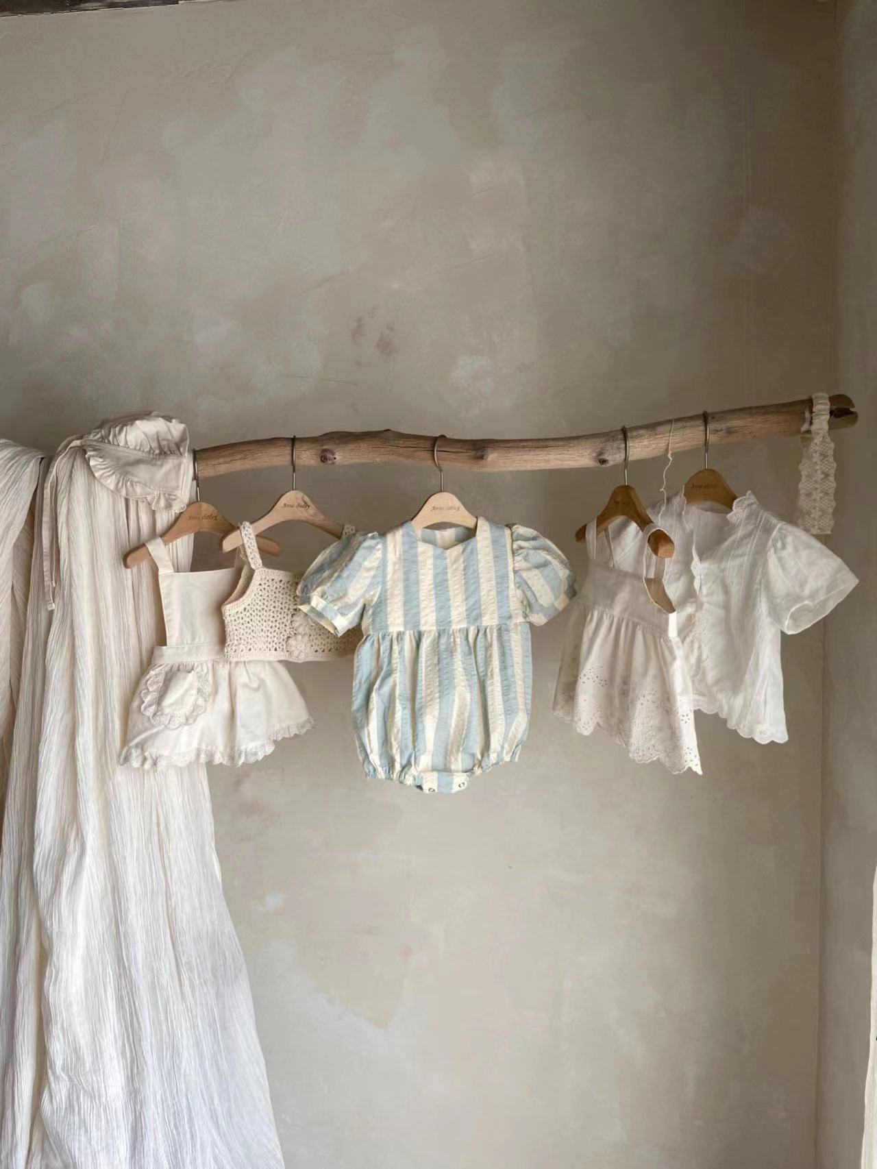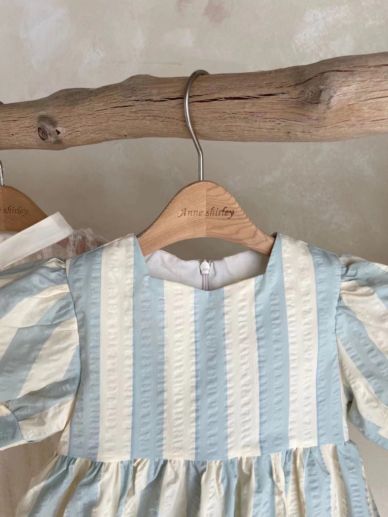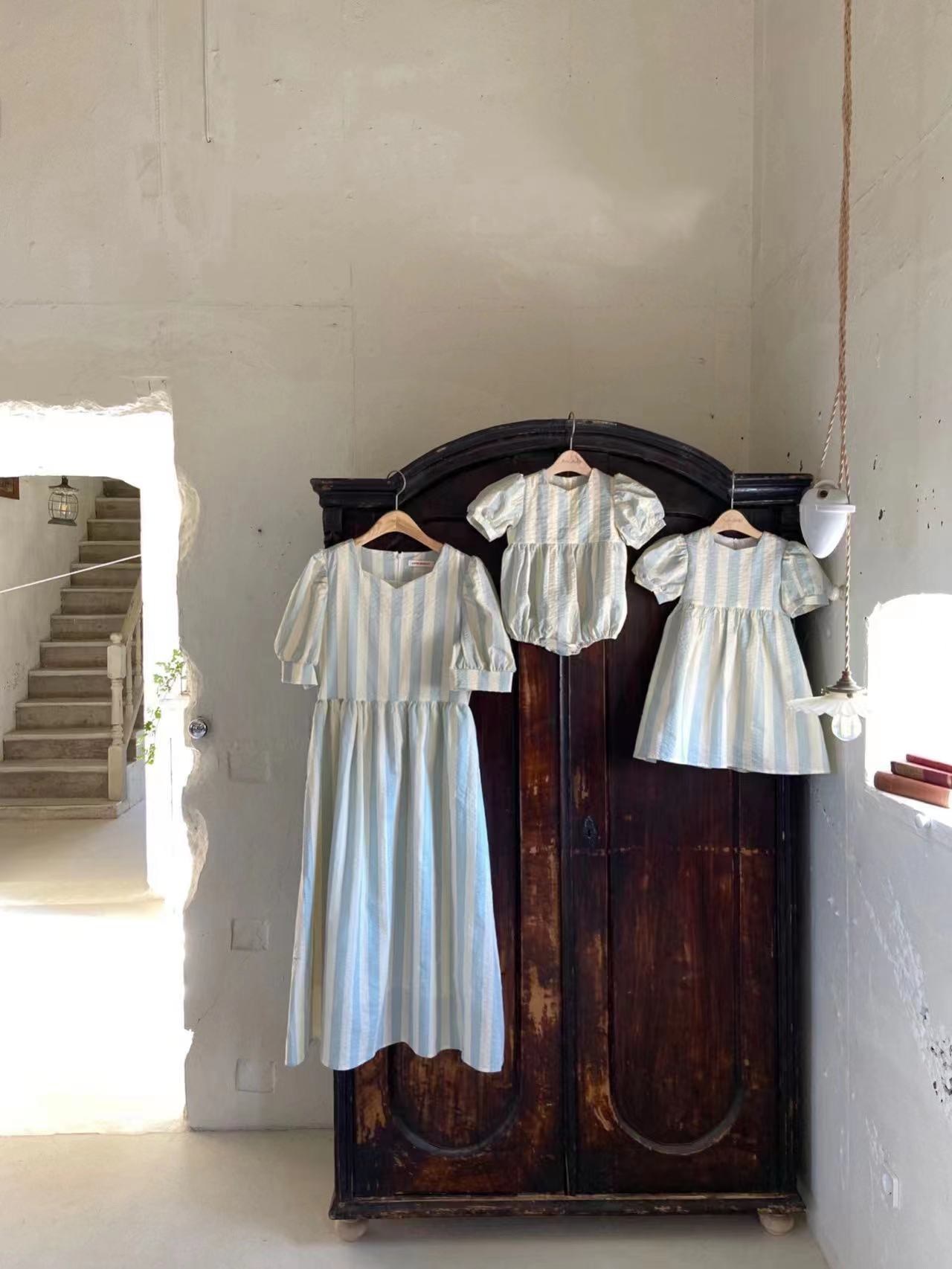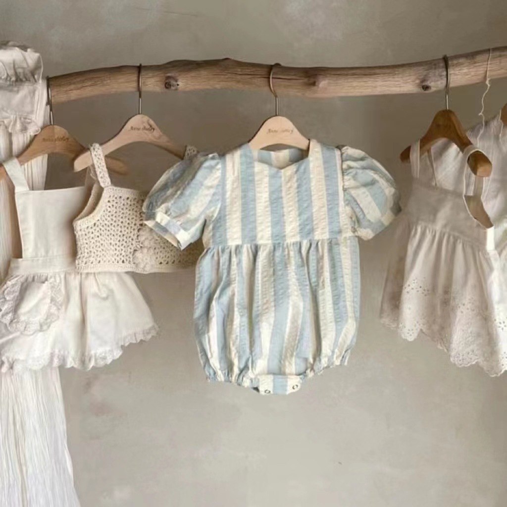 스타일에 한국 스타일 여성 아기의 프레피 스타일 점프 수트 아기의 여름 착용 스트라이프 얇은 크루넥 등반 세트 + 스커트스토어 가기