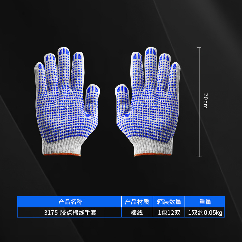 • 3175-파란색 접착제 포인트 코튼 장갑 1 쌍