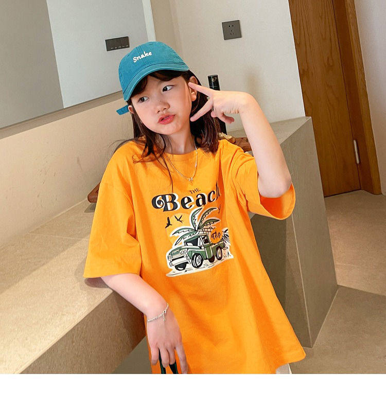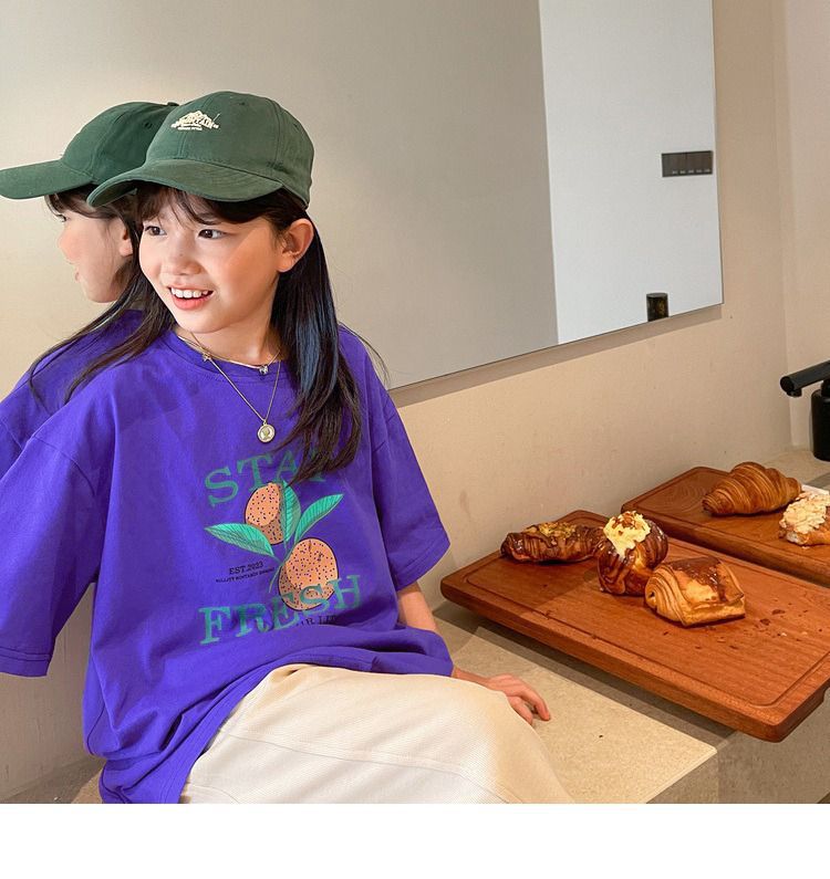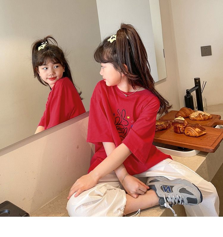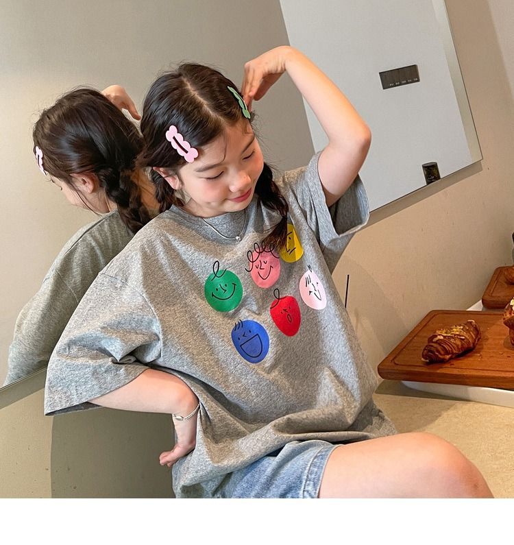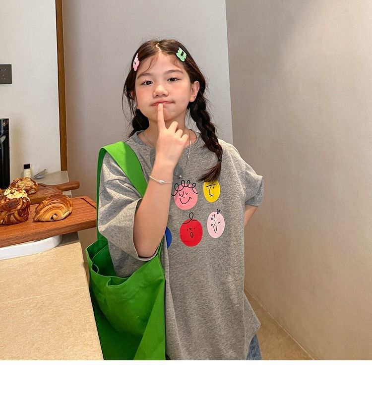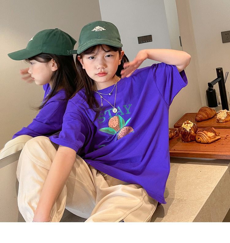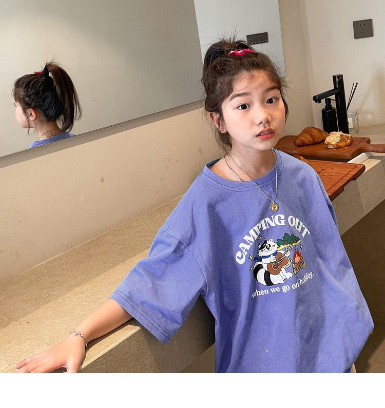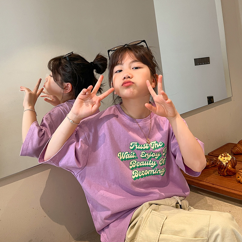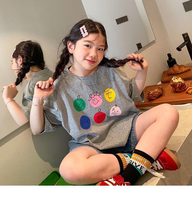 여아 반팔 티셔츠 여름 새로운 스타일 중대형 어린이 면 느슨한 라운드 넥 아동 캐주얼 여름 아동복 트렌디 탑스토어 가기