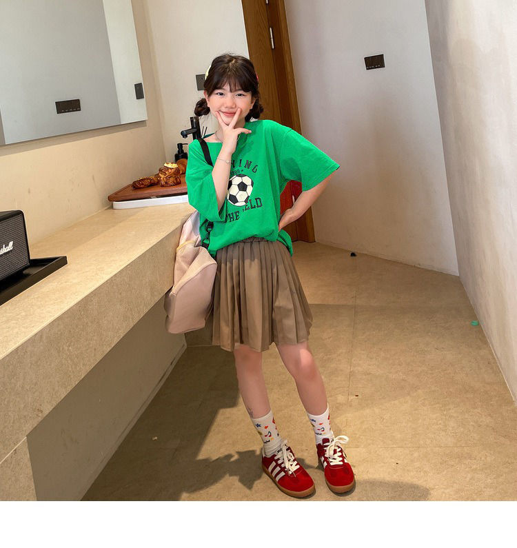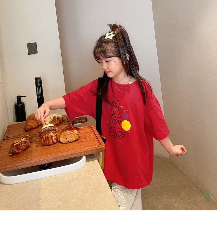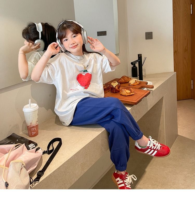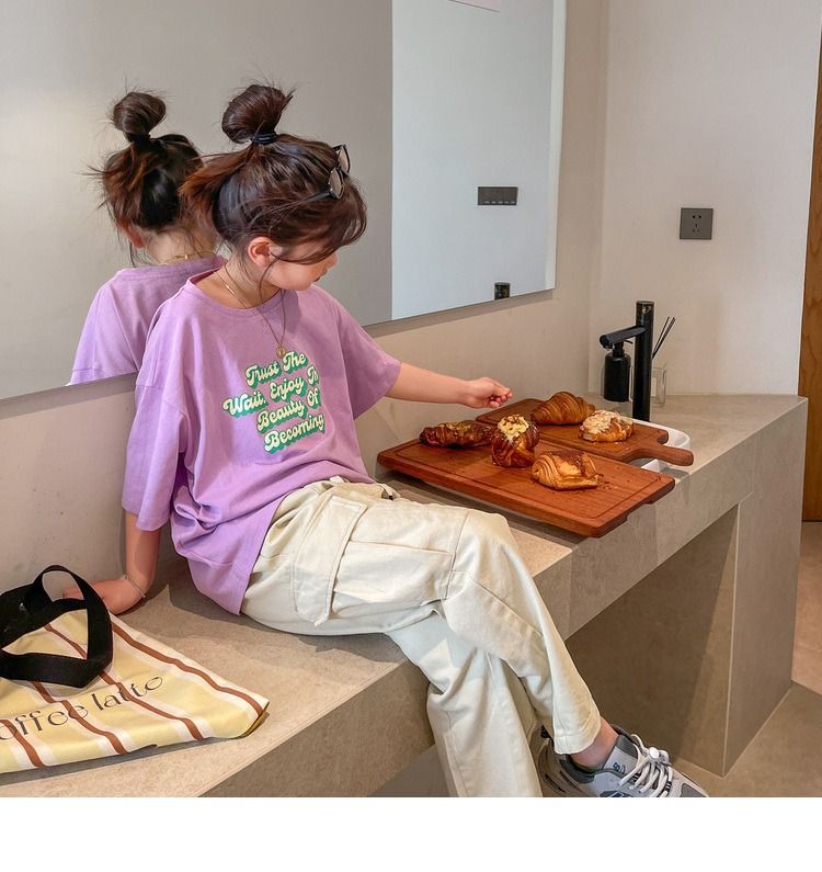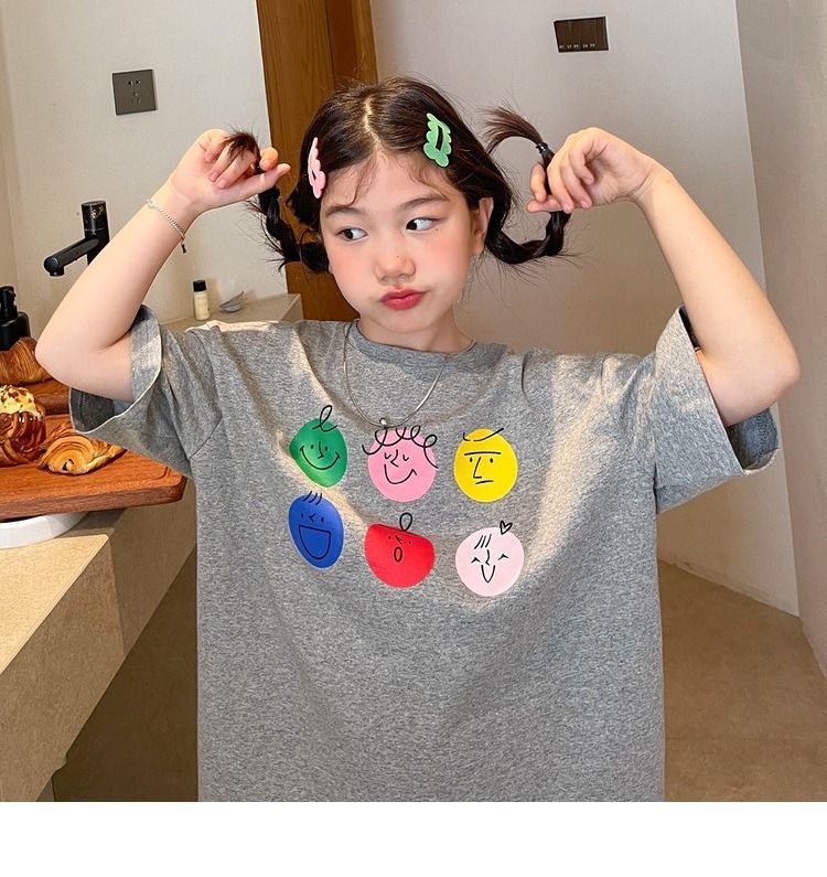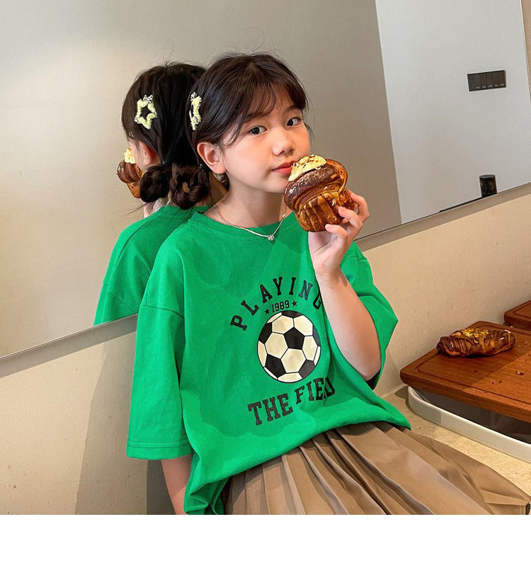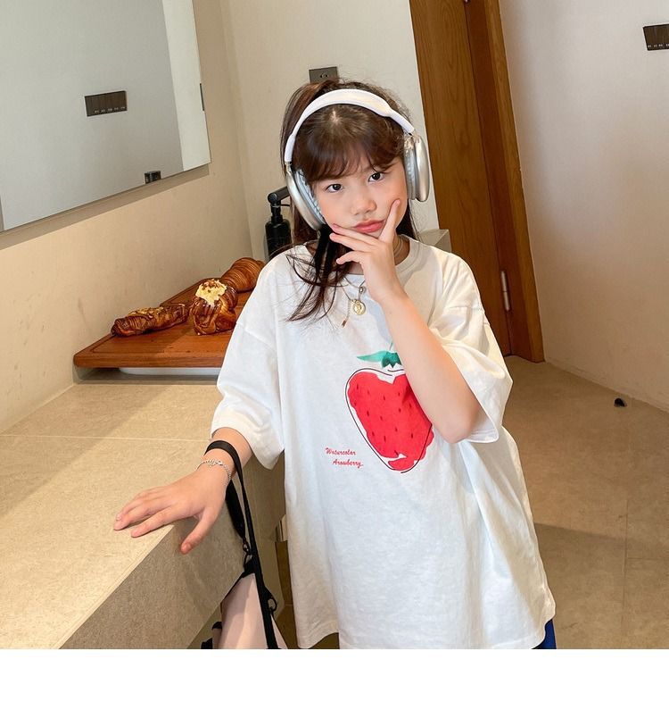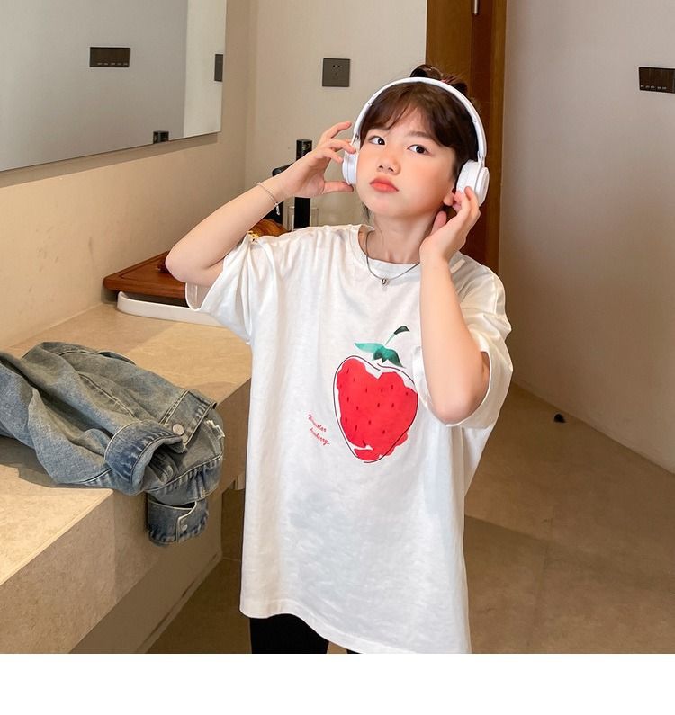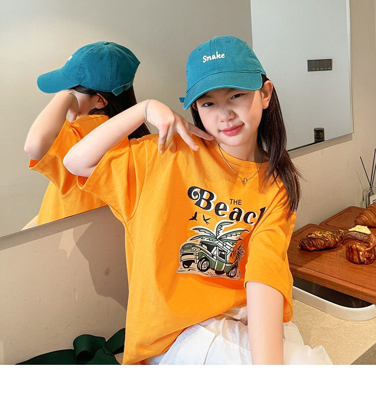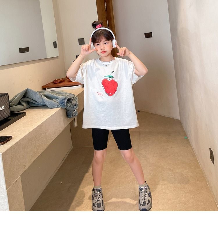 여아 반팔 티셔츠 여름 새로운 스타일 중대형 어린이 면 느슨한 라운드 넥 아동 캐주얼 여름 아동복 트렌디 탑스토어 가기