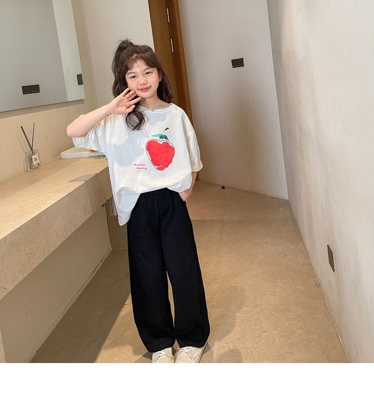 여아 반팔 티셔츠 여름 새로운 스타일 중대형 어린이 면 느슨한 라운드 넥 아동 캐주얼 여름 아동복 트렌디 탑