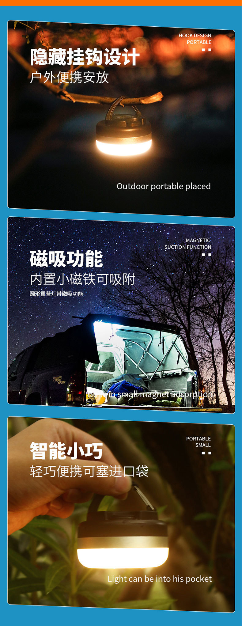 국경 간 새로운 LED 텐트 조명 야외 조명 장수 비상 휴대용 캠핑 조명 캠핑 조명스토어 가기