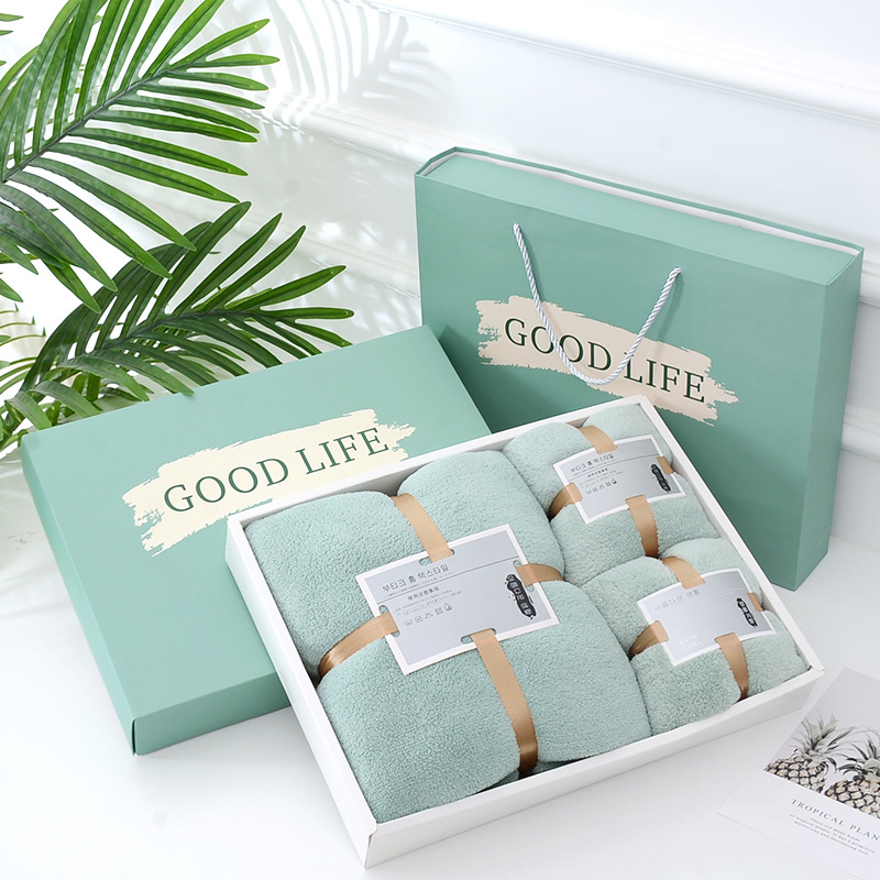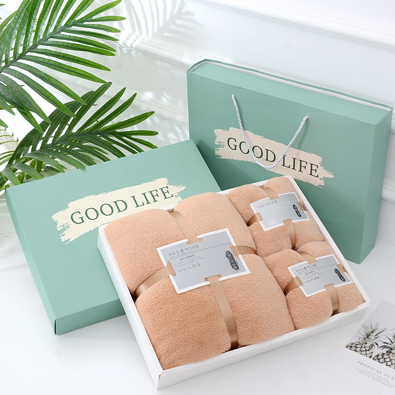 공장 도매 산호 양털 수건 목욕 수건 3 피스 선물 상자 세트 흡수성 맞춤형 로고 이벤트 선물스토어 가기
