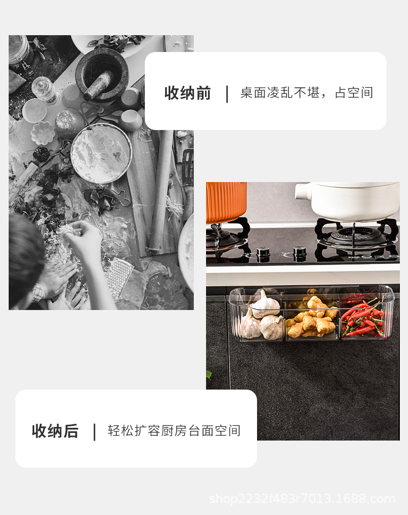 투명 생강 마늘 보관 바구니 캐비닛 걸이형 선반 수납함 캐비닛 도어 수납함 양념 생강 마늘 보관 무조립