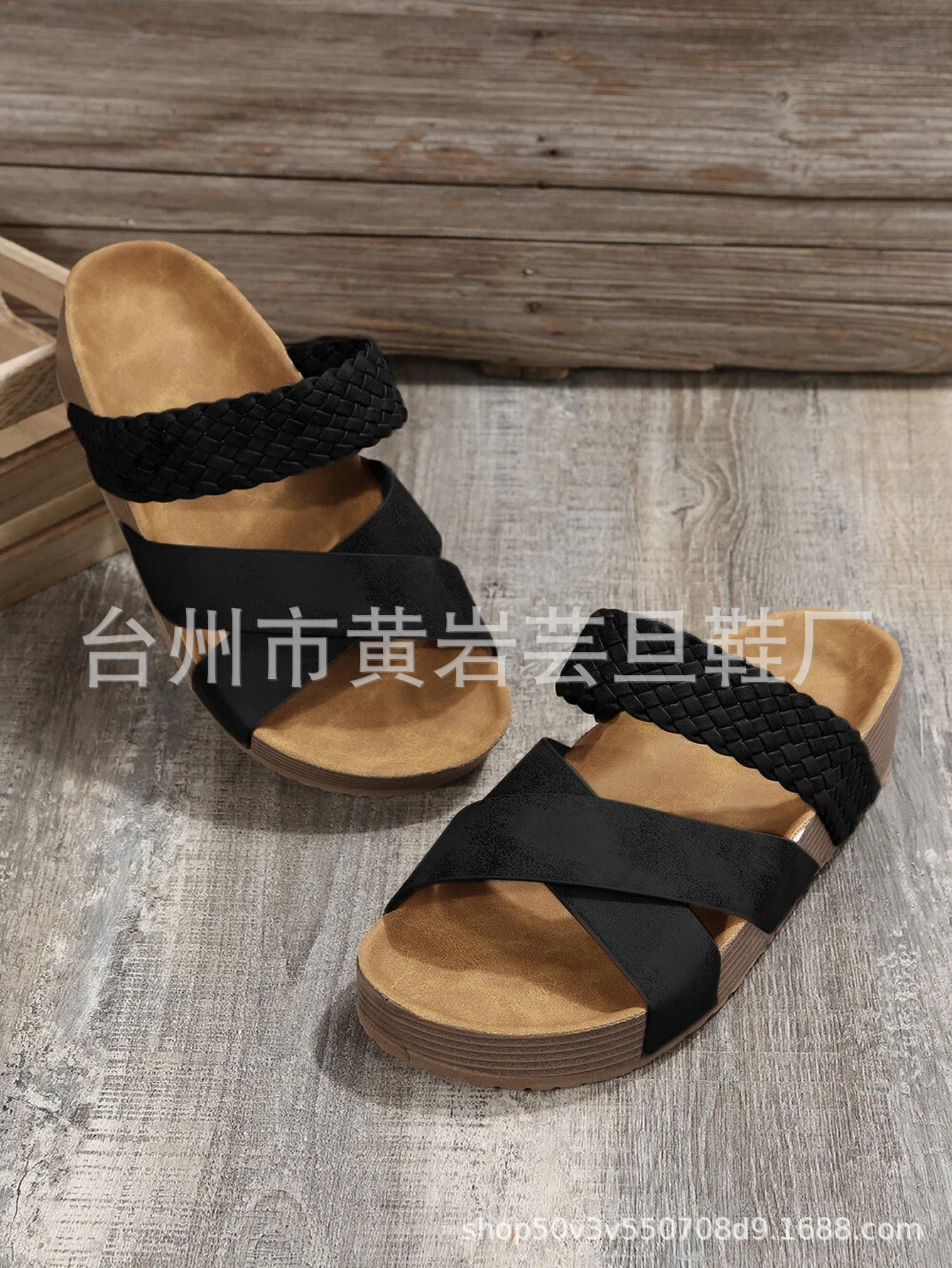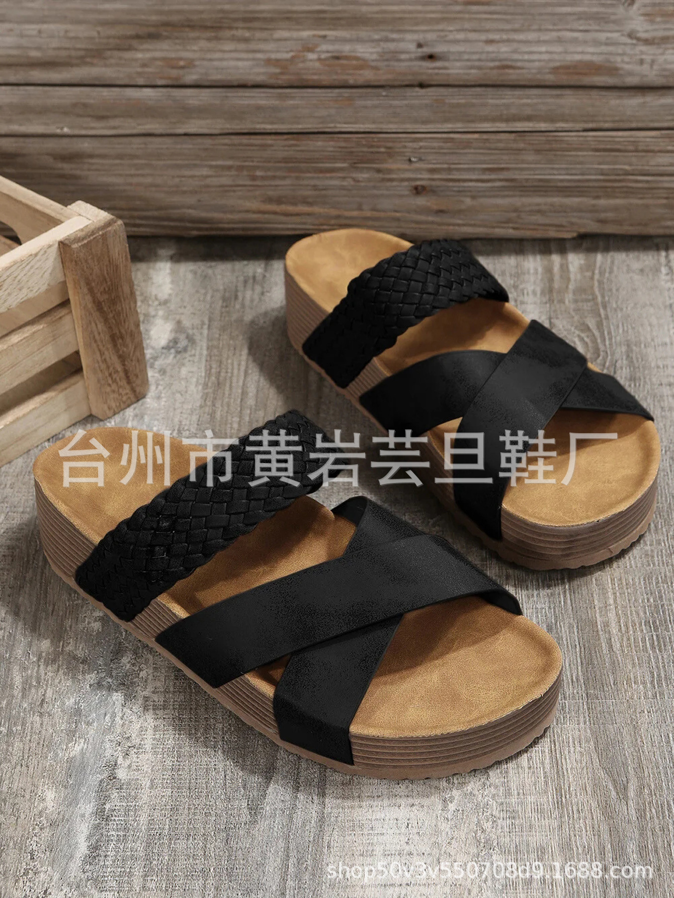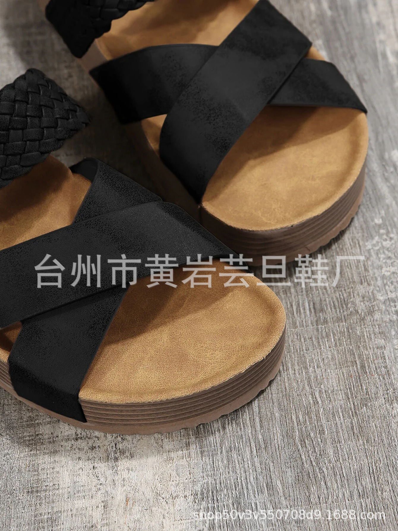 재고 크로스 국경 플러스 사이즈 샌들 여성 23 유럽과 미국 새로운 평면 두꺼운 바닥 크로스 짠 샌들 공장 도매