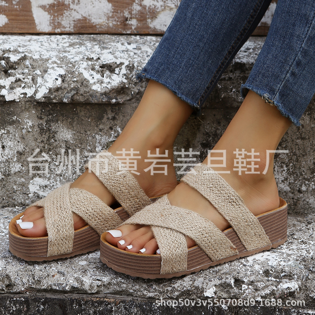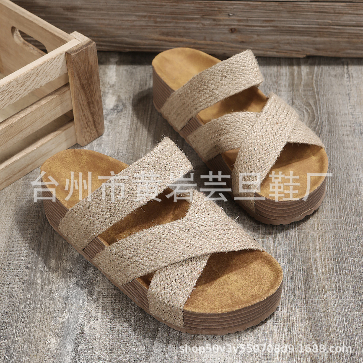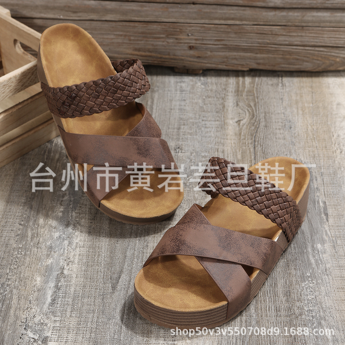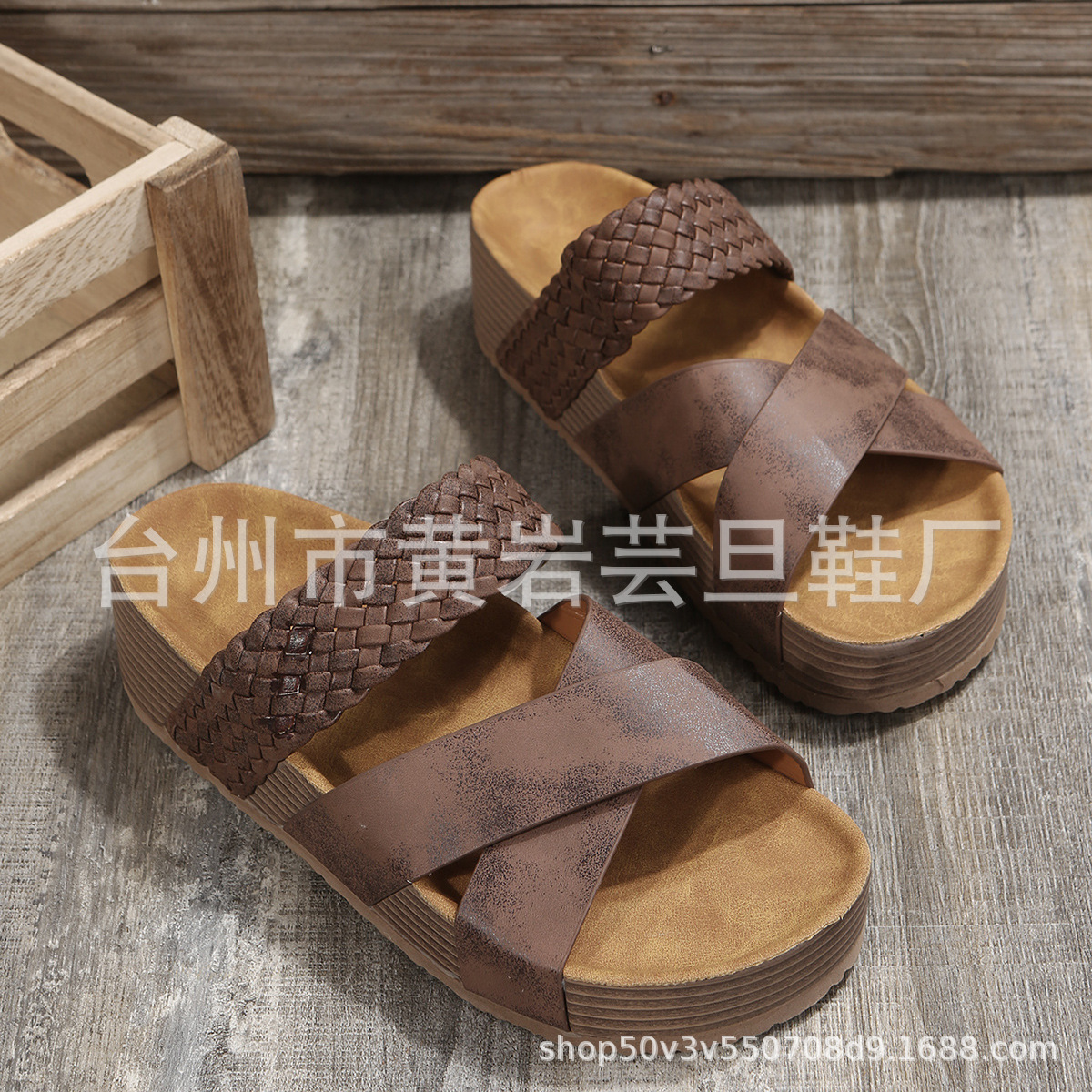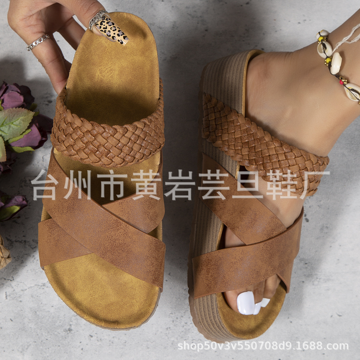 재고 크로스 국경 플러스 사이즈 샌들 여성 23 유럽과 미국 새로운 평면 두꺼운 바닥 크로스 짠 샌들 공장 도매스토어 가기