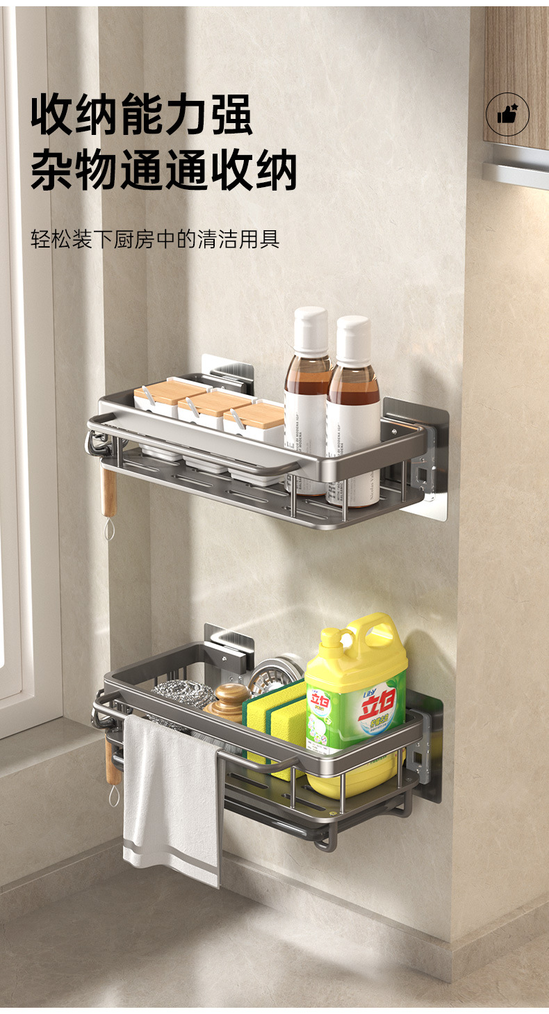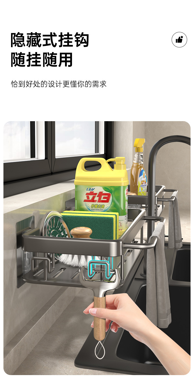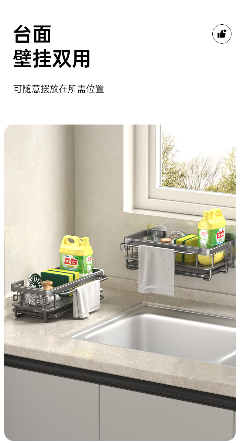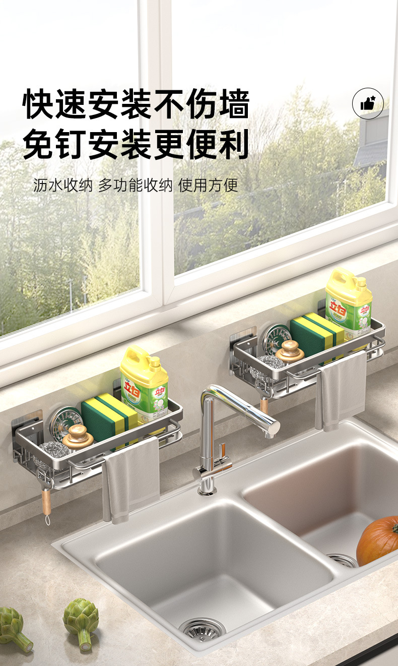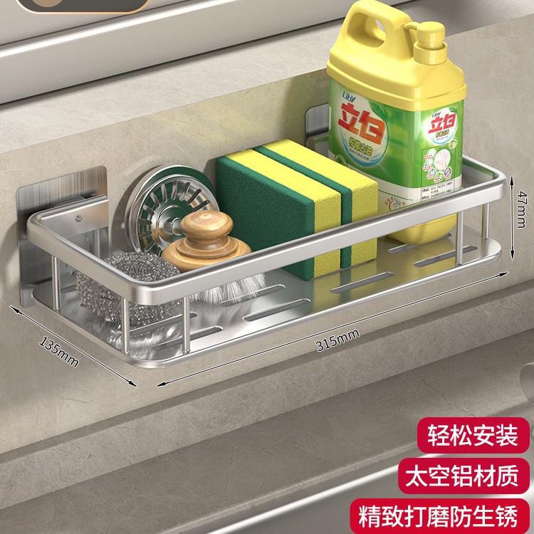 주방 걸레 세척 보관 선반, 공간 절약형 알루미늄 무타공 가정용 싱크대 용품 걸이 바구니