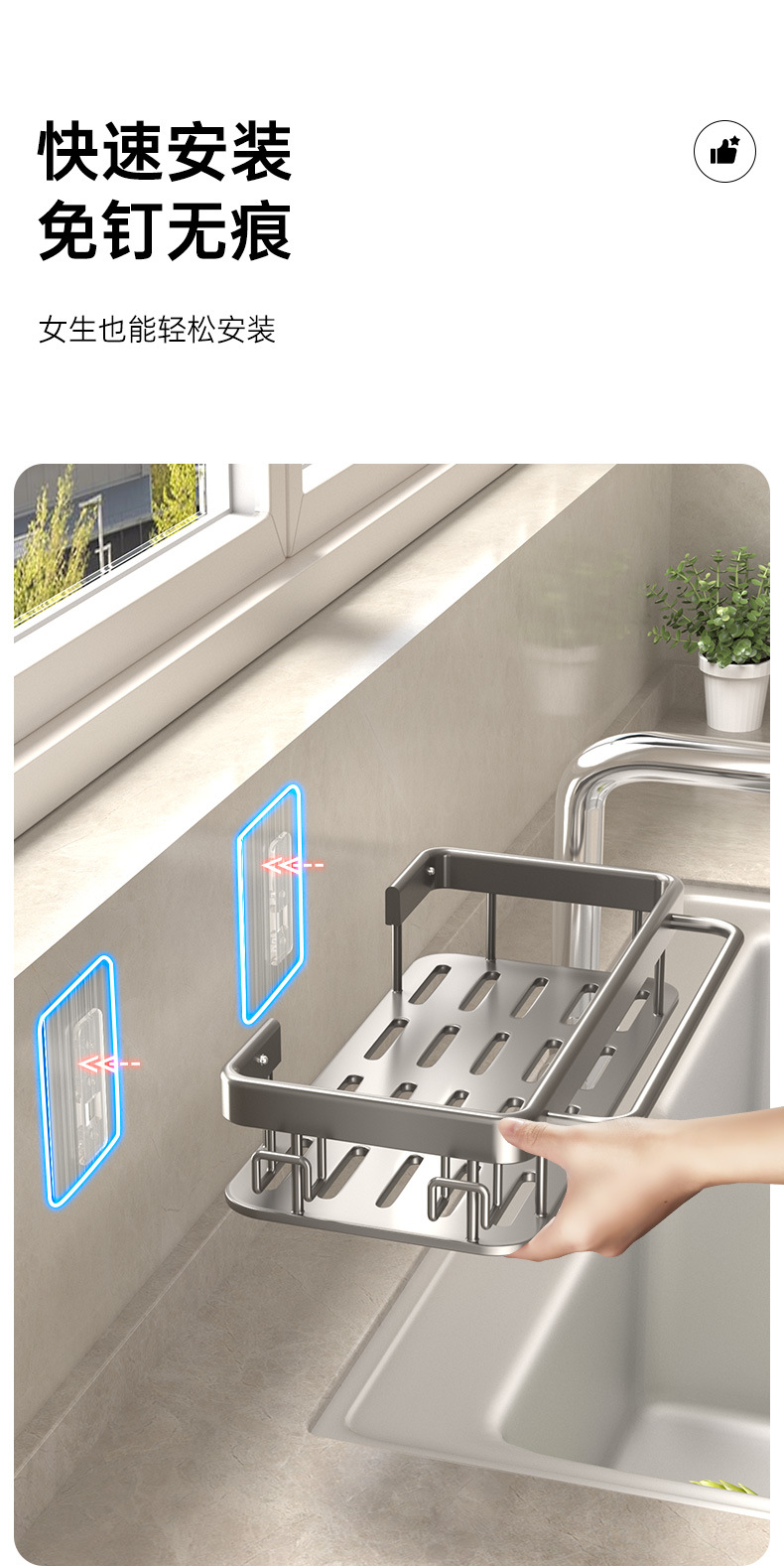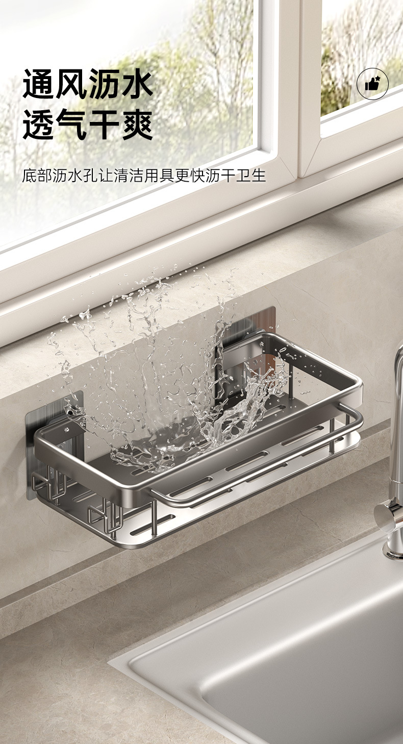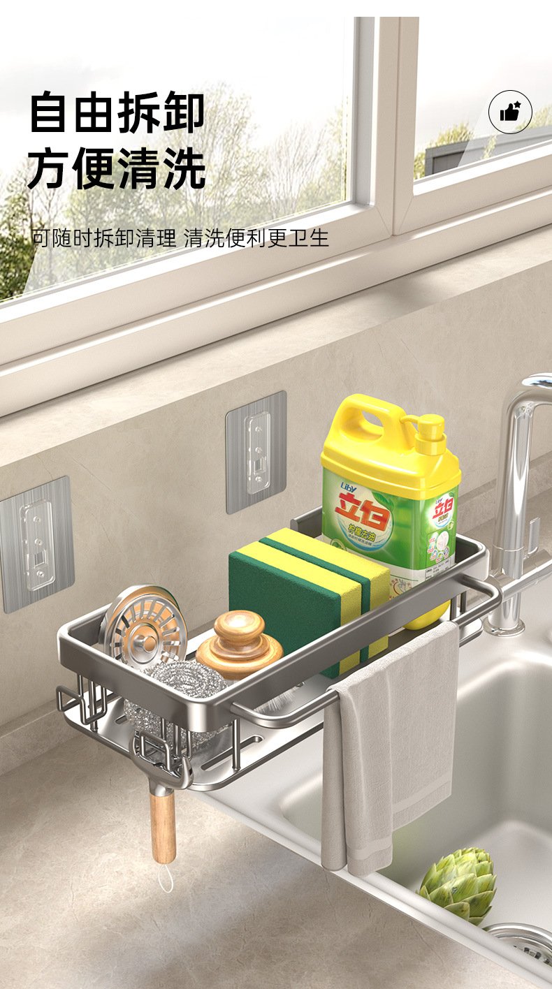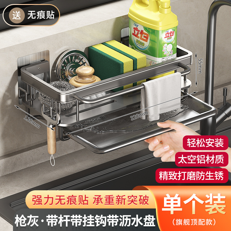 주방 걸레 세척 보관 선반, 공간 절약형 알루미늄 무타공 가정용 싱크대 용품 걸이 바구니