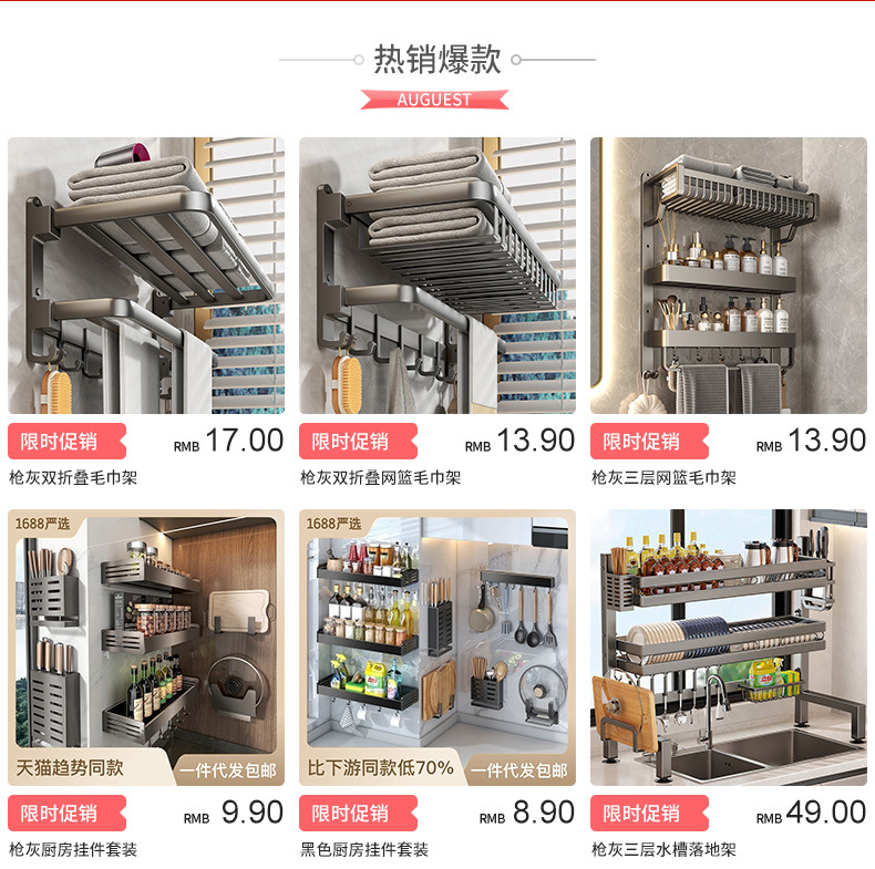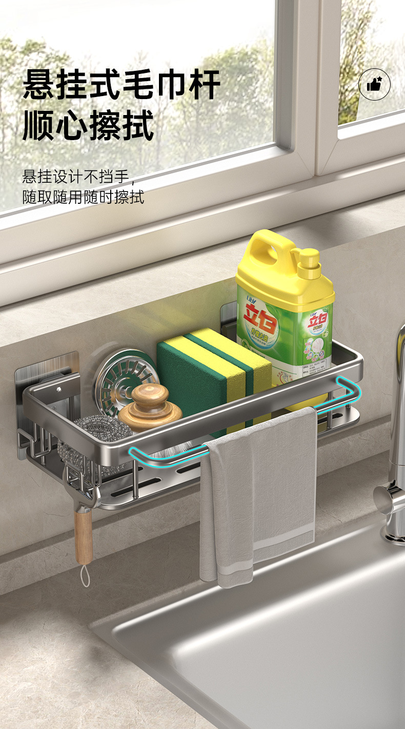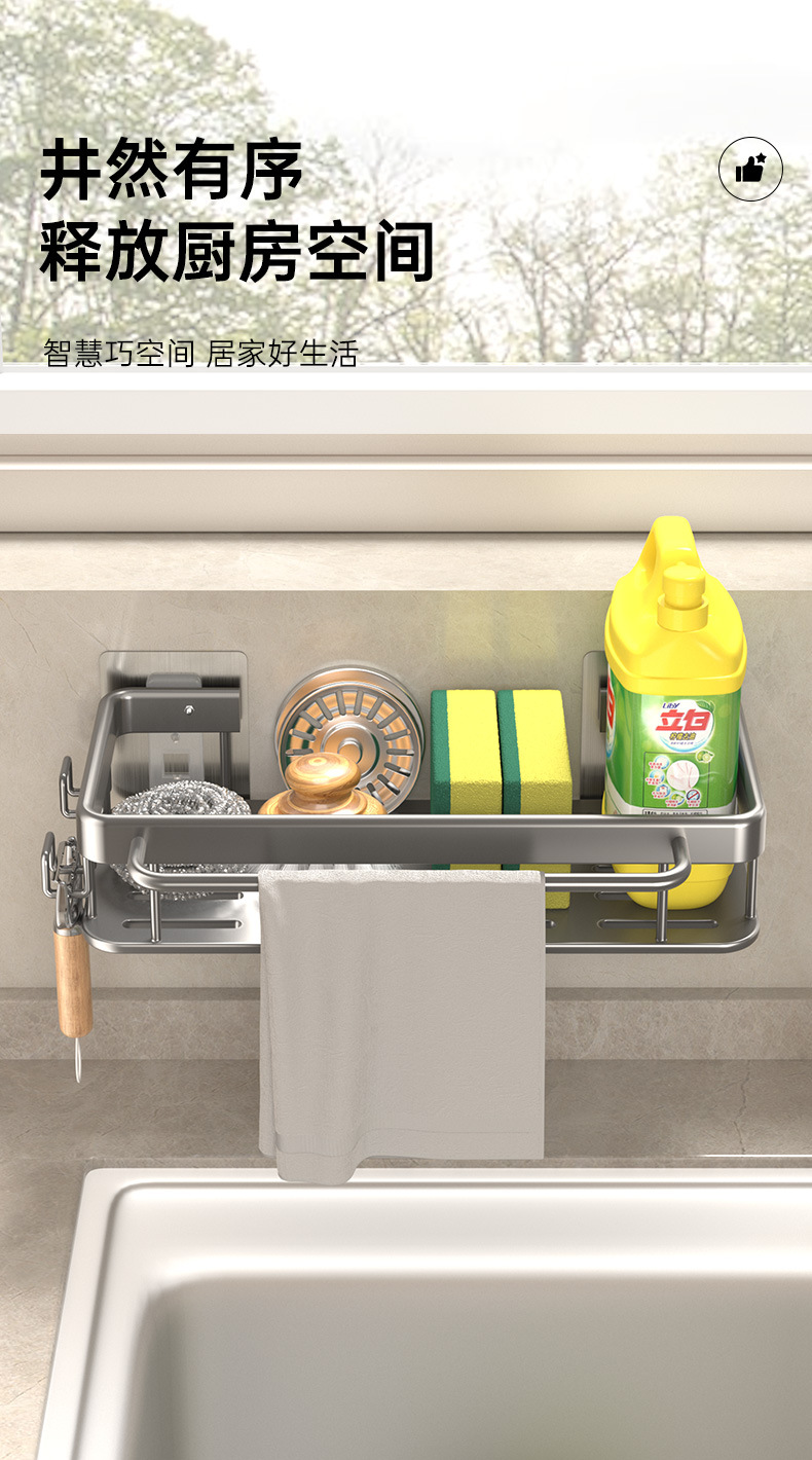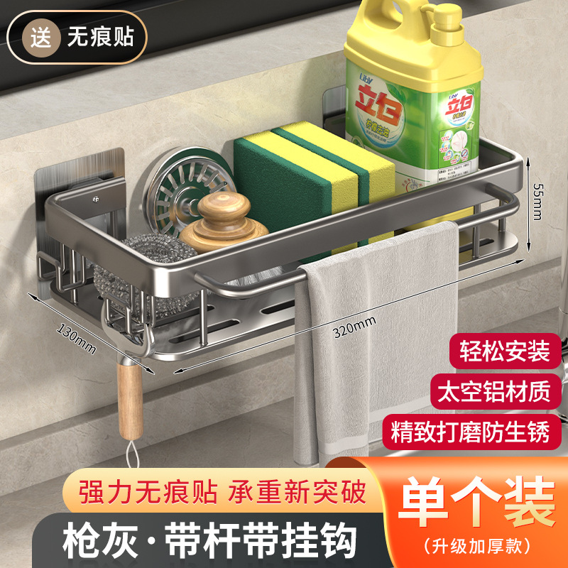 주방 걸레 세척 보관 선반, 공간 절약형 알루미늄 무타공 가정용 싱크대 용품 걸이 바구니스토어 가기
