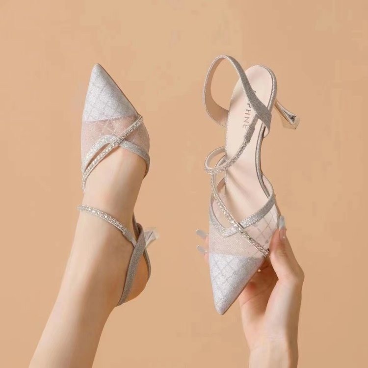 2023 통기성 단층 신발 여성 신발 사계절 비싼 뾰족한 메쉬 신발 고급 힐 작업 신발 한국 패션 여성 샌들스토어 가기