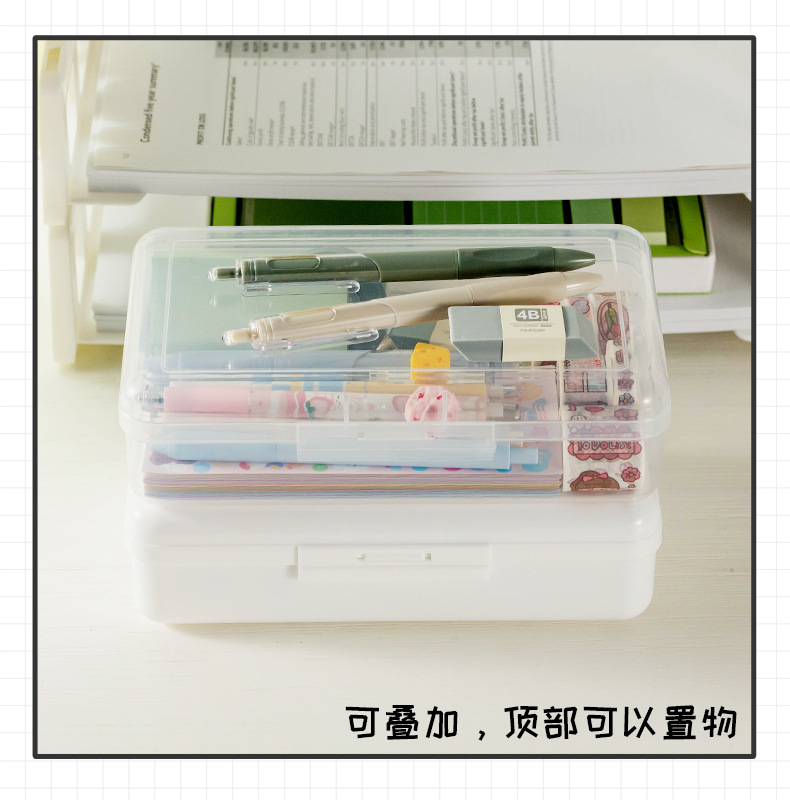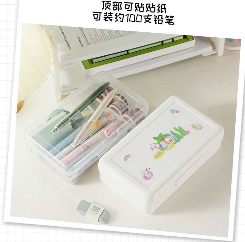 플라스틱 투명 문구 상자 대용량 간단한 어린이 연필 가방 초등학교 연필 상자 스케치 마크 펜 보관 상자스토어 가기