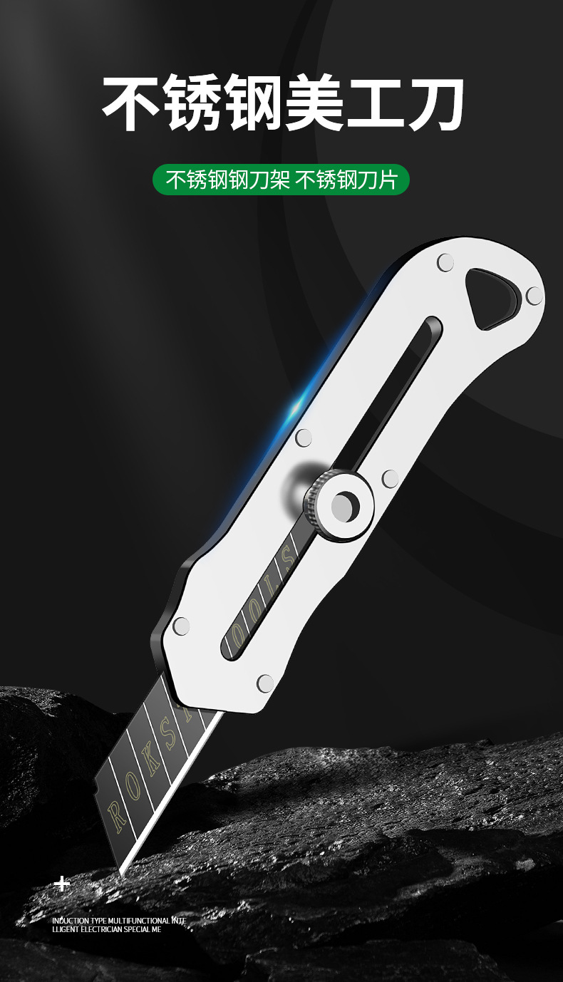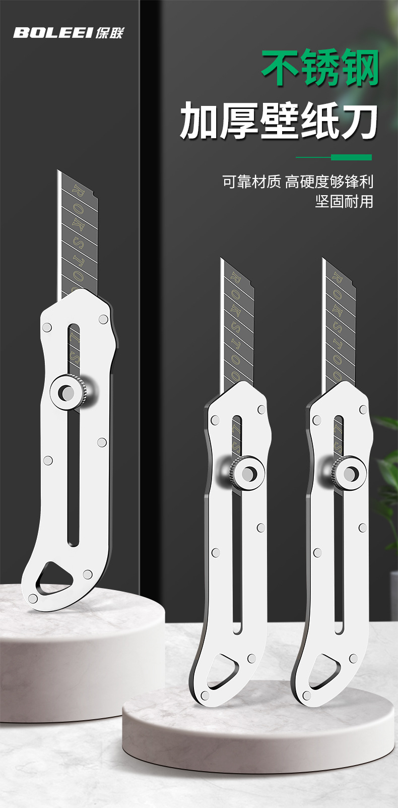 스테인레스 스틸 유틸리티 나이프 무거운 의무 두꺼운 종이 커터 슈퍼 날카로운 오픈 박스 벽지 칼 벽지 블레이드 모든 금속 나이프 홀더