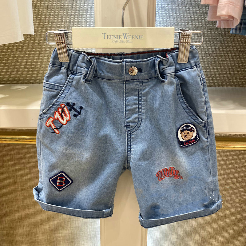 2023 여름 새로운 tw 곰 소년 만화 수 놓은 데님 바지 한국식 중간 큰 소년 한국식 바지스토어 가기
