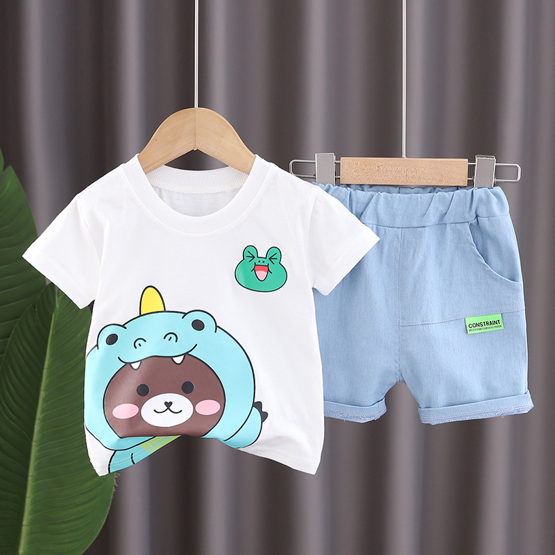 소년 여름 세트 2023 새로운 소년 패션 의류 유행 아기 반팔 세련된 유행 투피스 세트스토어 가기