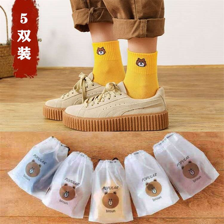 양말 도매 귀여운 곰돌이 끈 조임식 도매 발 마사지 비즈니스 양말 제조업체 일회용 양말 도매스토어 가기