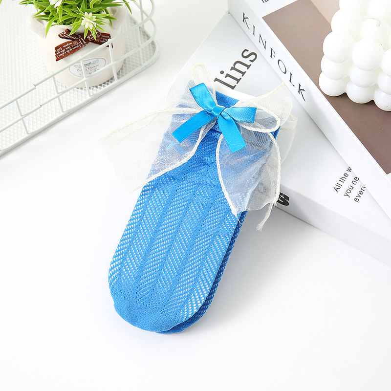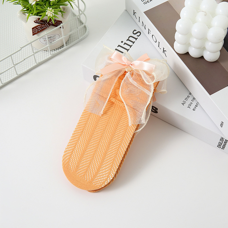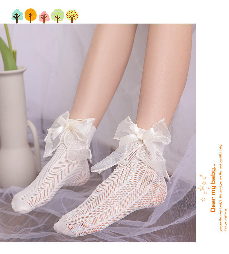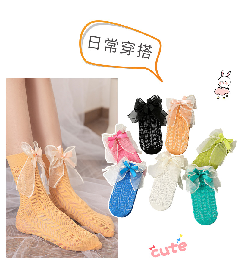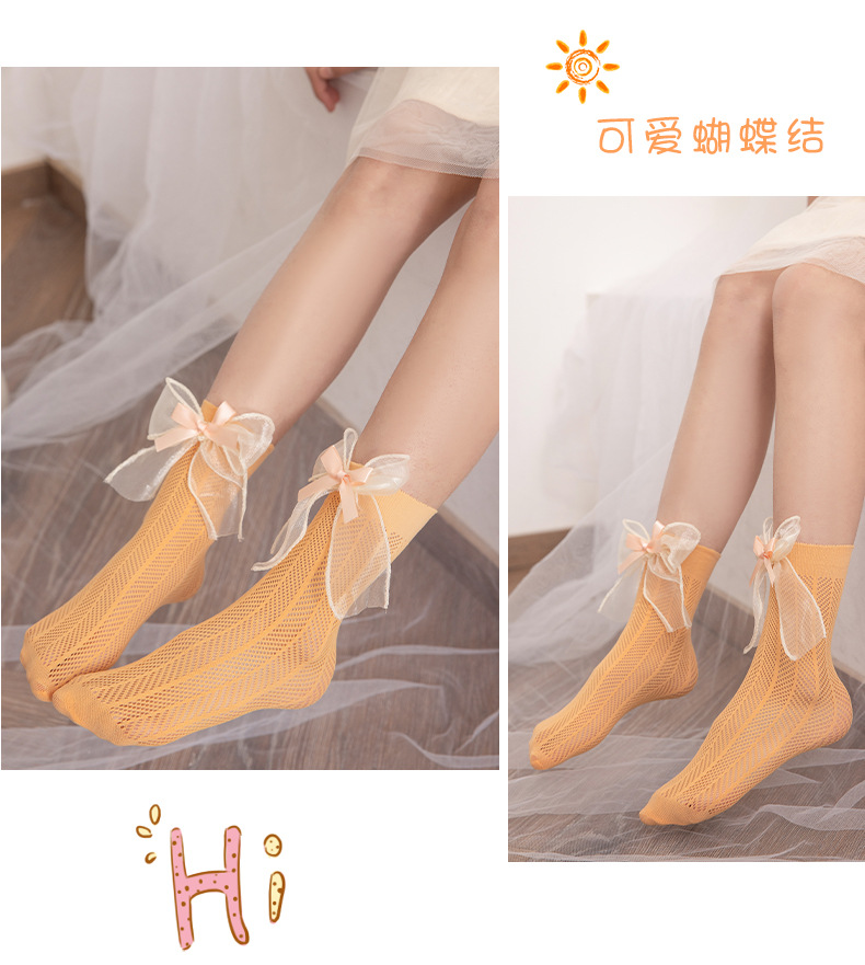 어린이 양말 여름 얇은 여아 스택 캔디 컬러 미드 튜브 양말 베이비 컬러 더블 레이어 리본매듭 메쉬 양말