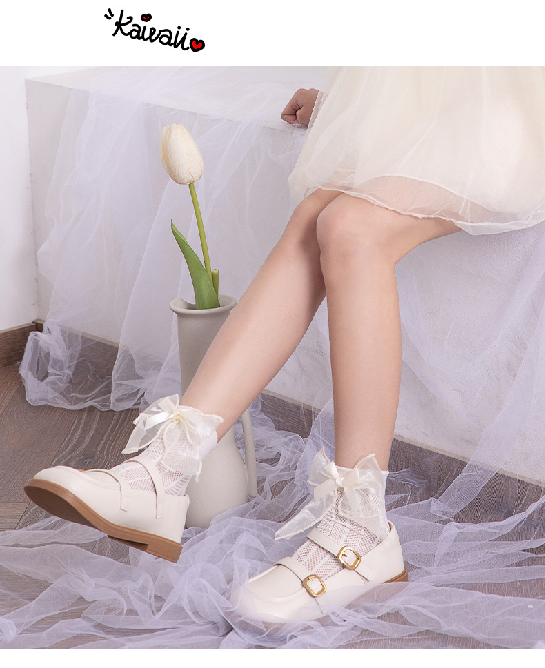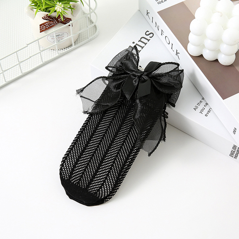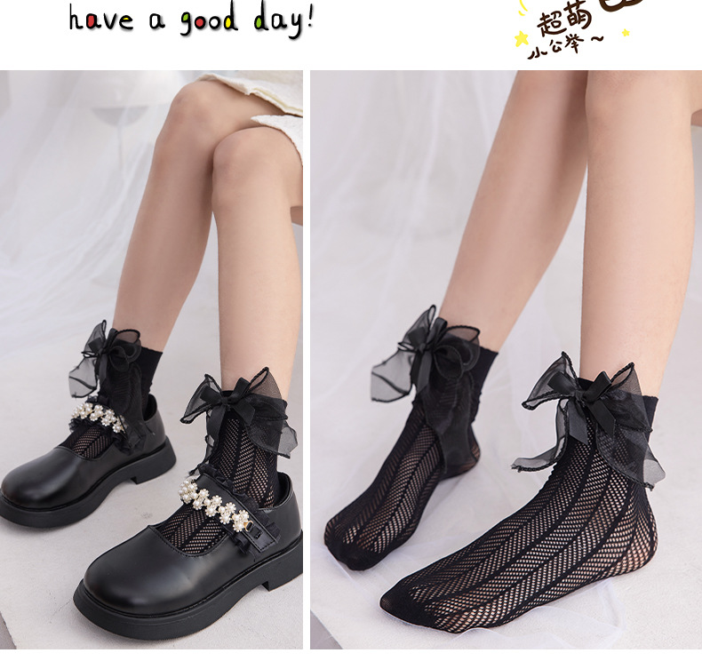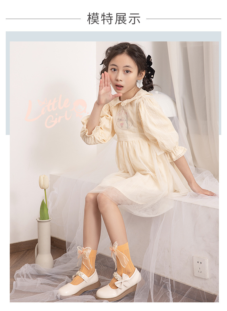 어린이 양말 여름 얇은 여아 스택 캔디 컬러 미드 튜브 양말 베이비 컬러 더블 레이어 리본매듭 메쉬 양말