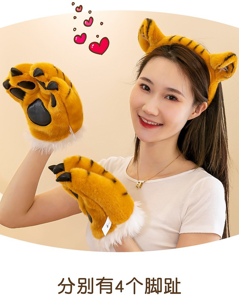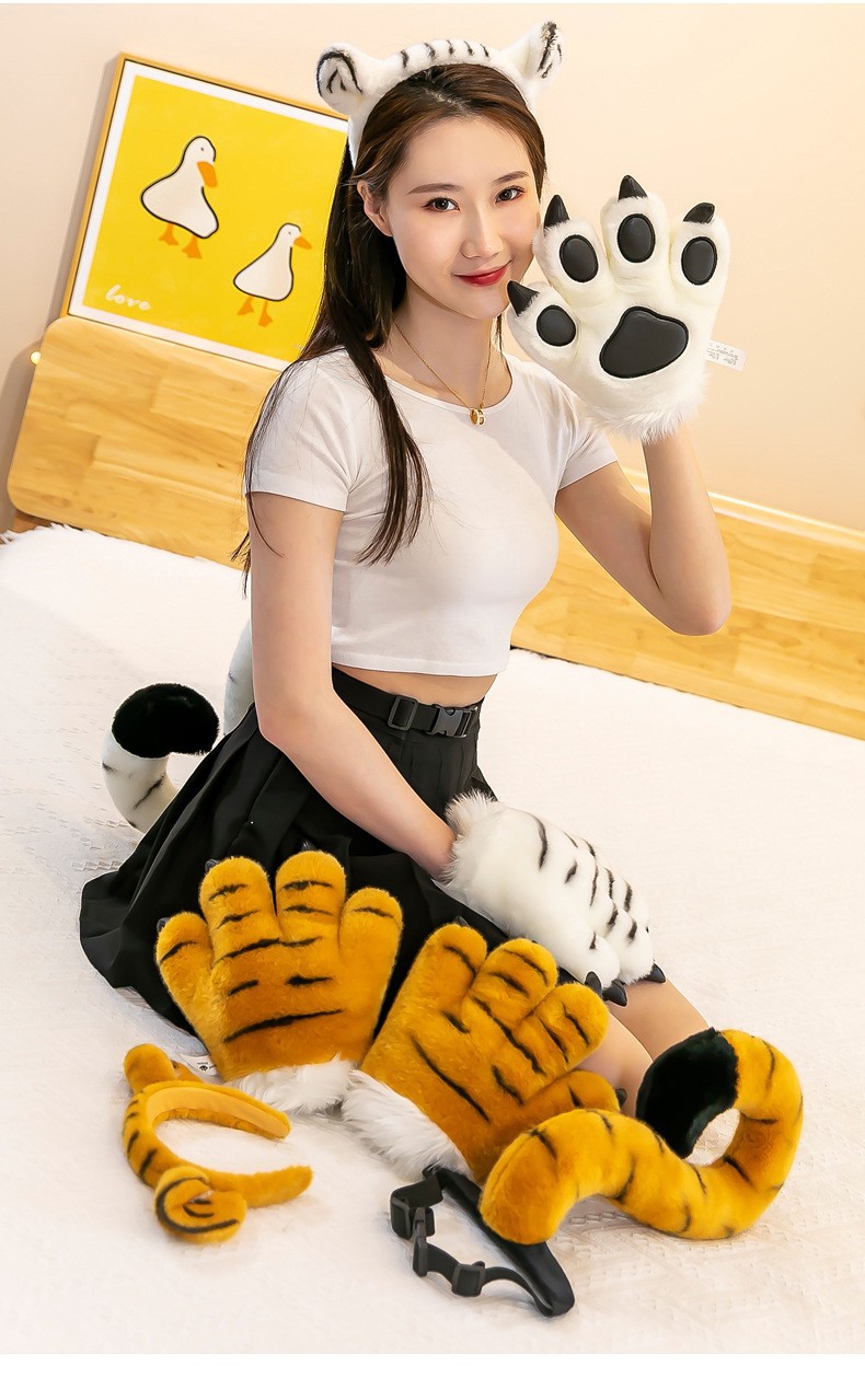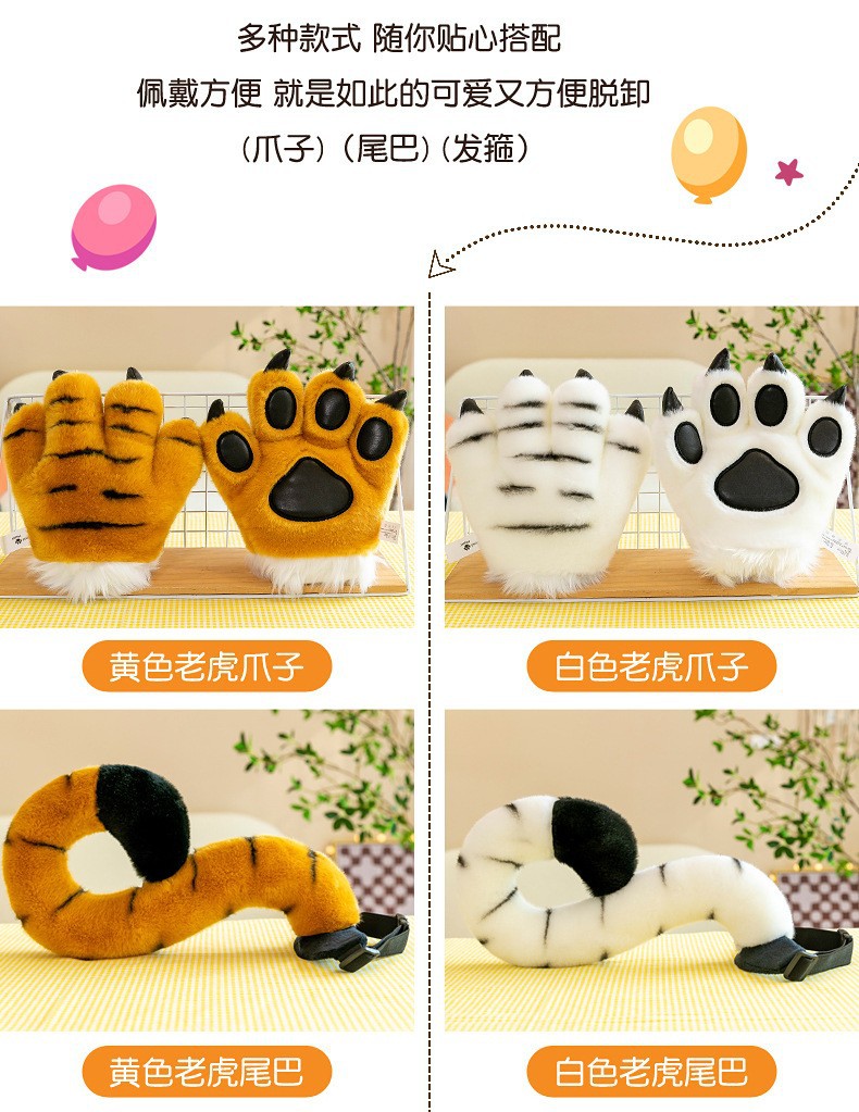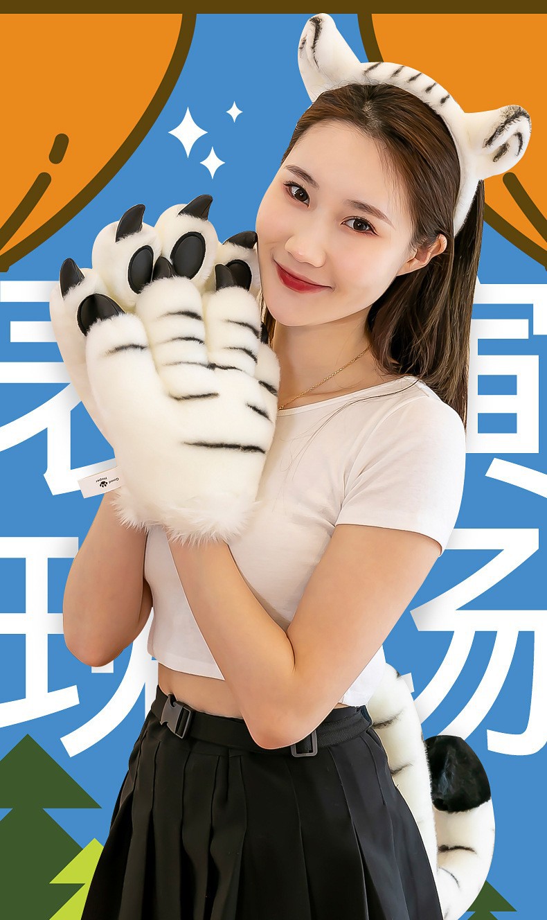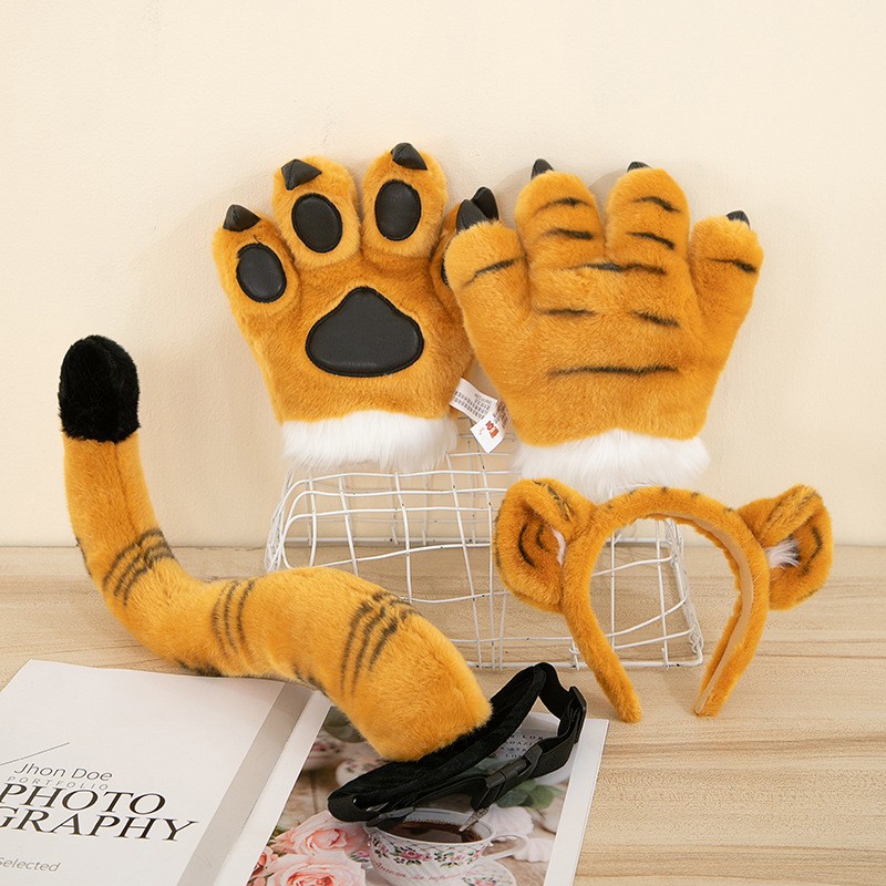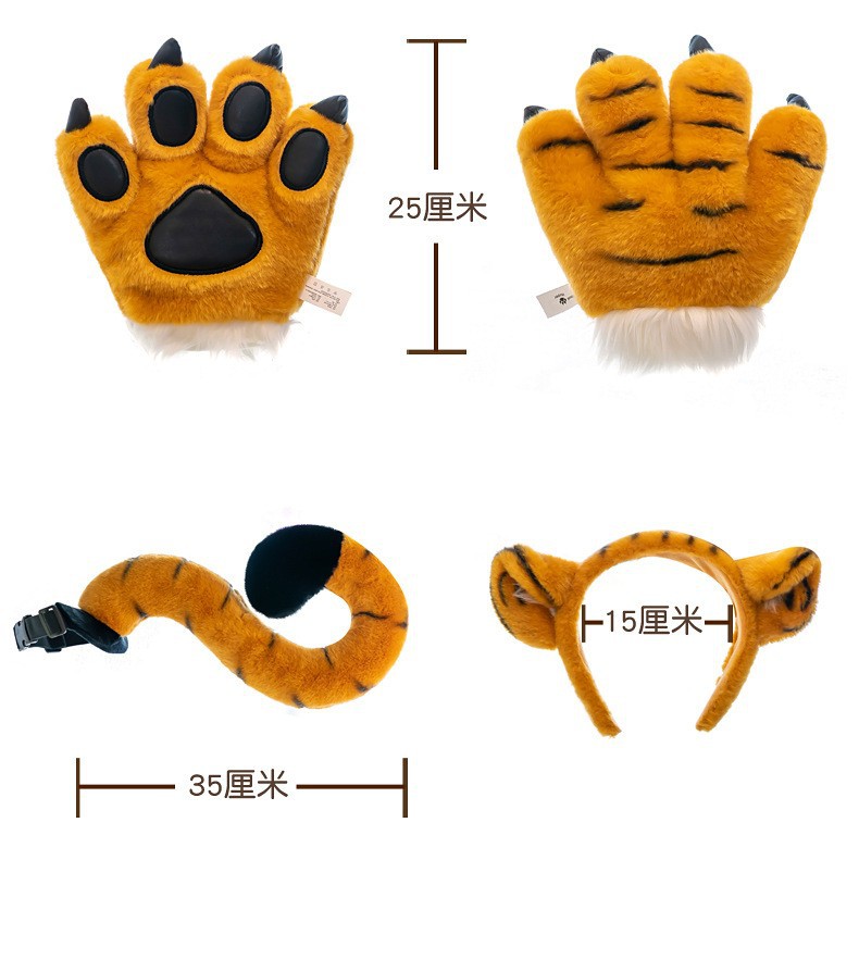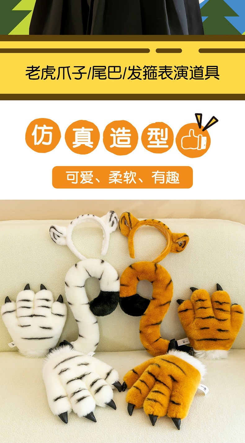 동물원 호랑이 꼬리 봉제 발톱 공룡 표범 장갑 인형 사슴 어린이 장난감 공연 소품