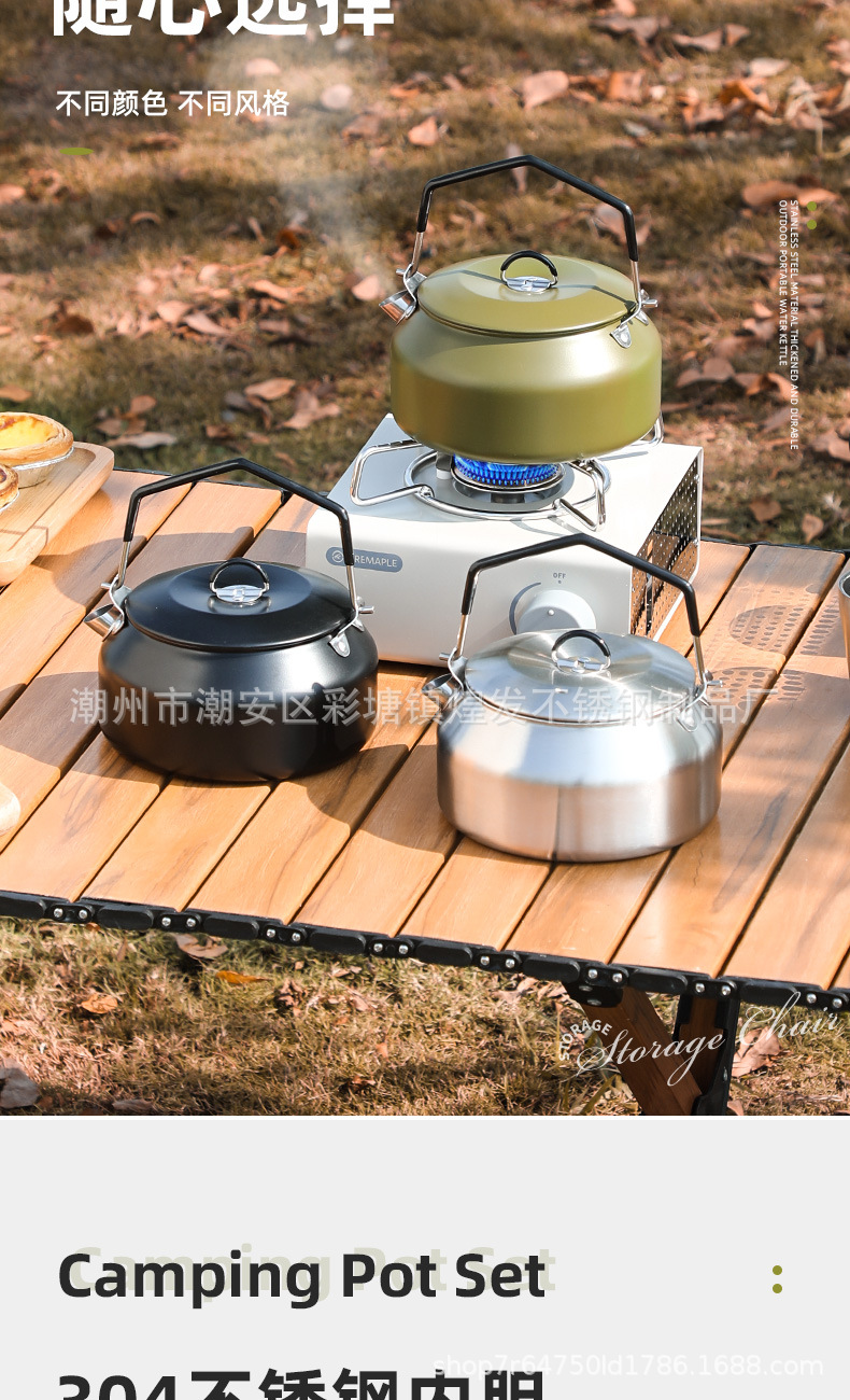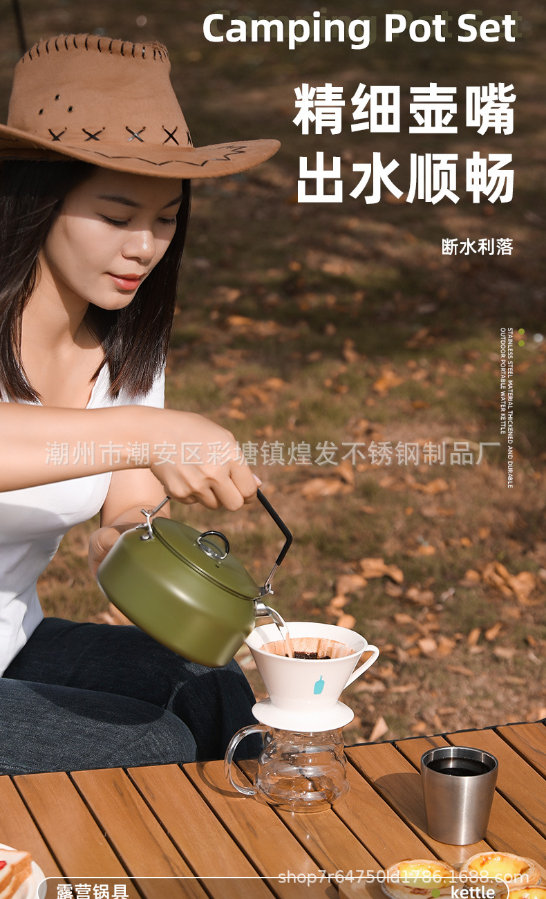 야외 304 스테인레스 스틸 주전자 야외 주전자 캠핑 주전자 야외 스토브 접이식 휴대용 쿠커스토어 가기