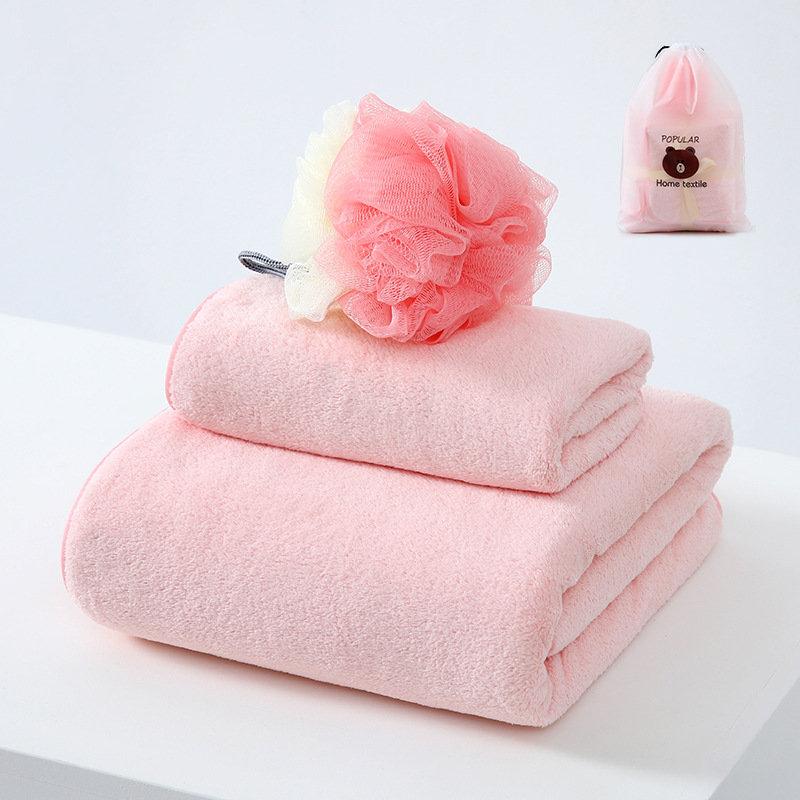 • 일반 핑크 타월 목욕 타월 목욕 꽃 3 종 세트 젖빛 가방 포장 후크