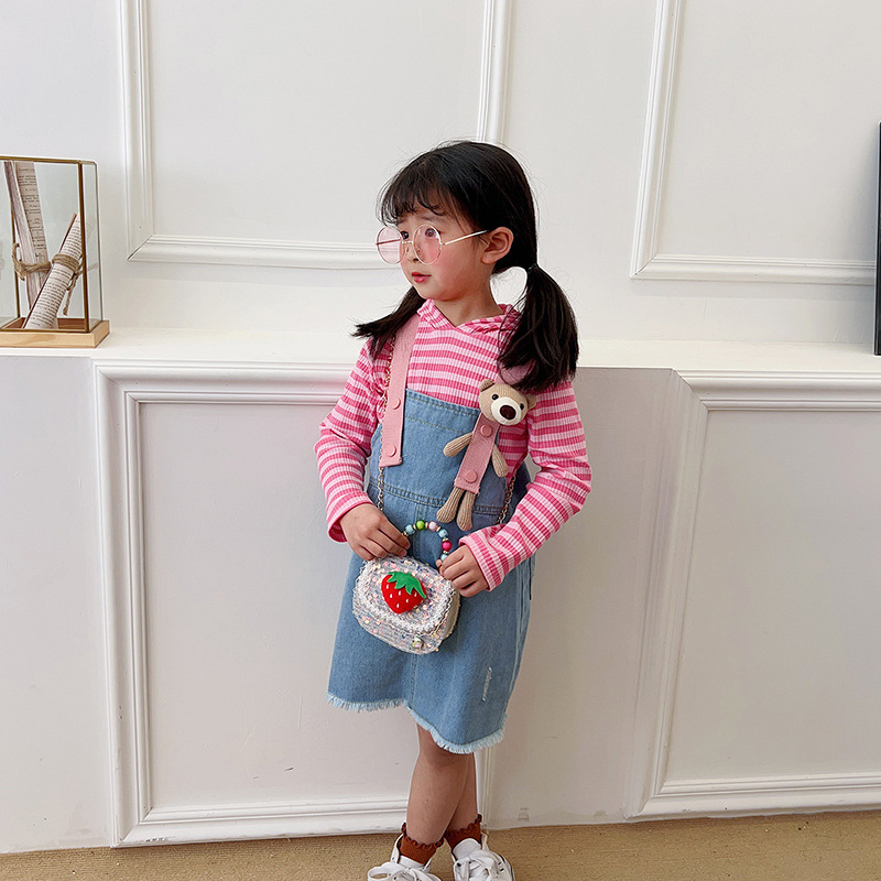 어린이 작은 사첼 소녀 스타일 딸기 손 크로스 바디 백 아기 패션 귀여운 공주 스팽글 체인 백스토어 가기
