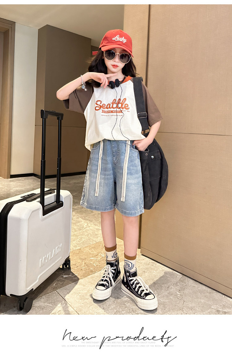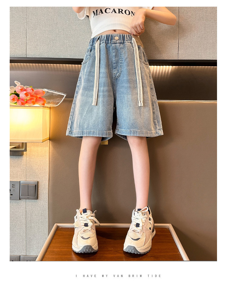 여아 데님 반바지 2025 여름 아우터 얇은 5부 바지 여아 루즈 미디엄 팬츠 서양식 와이드 팬츠스토어 가기