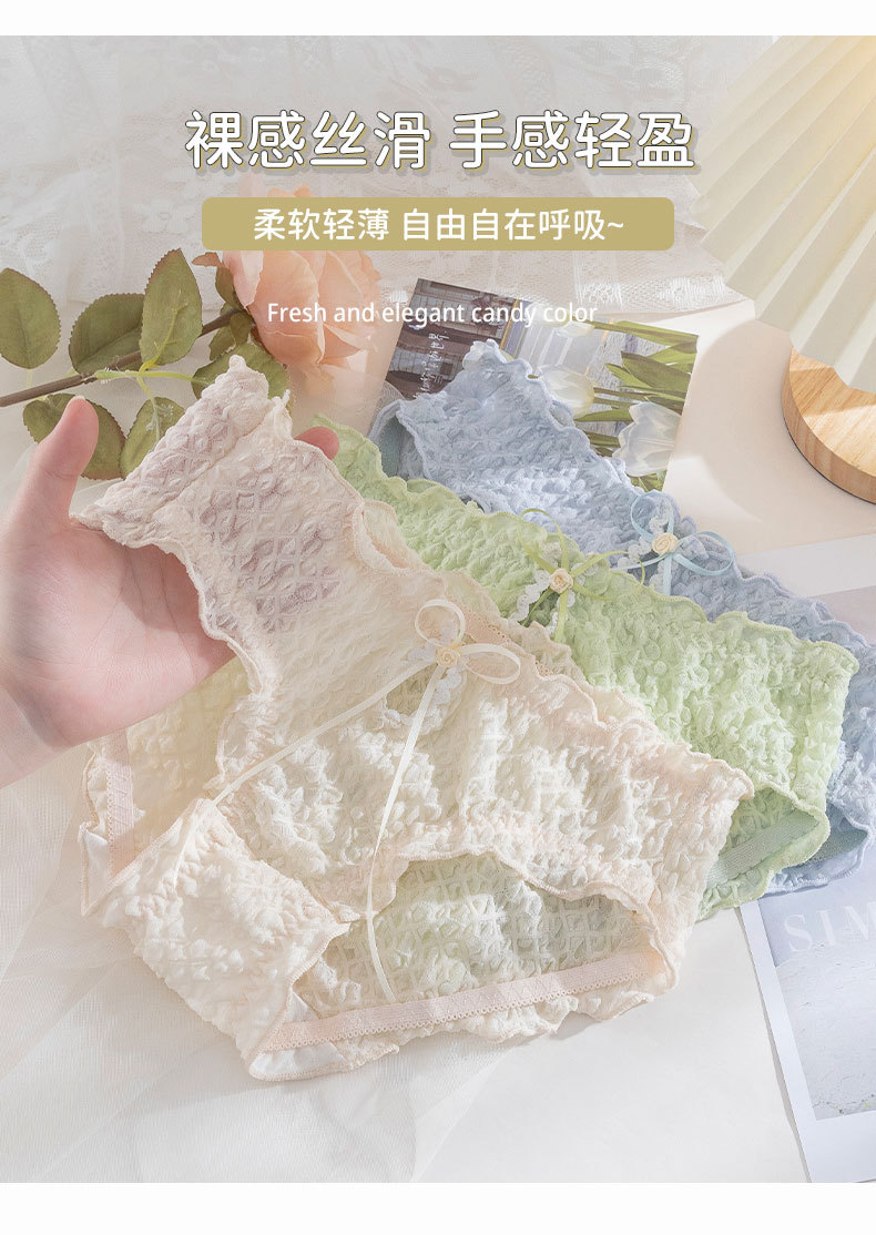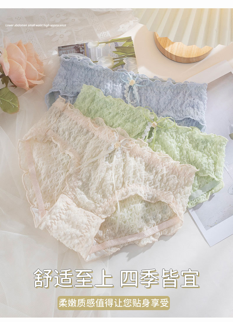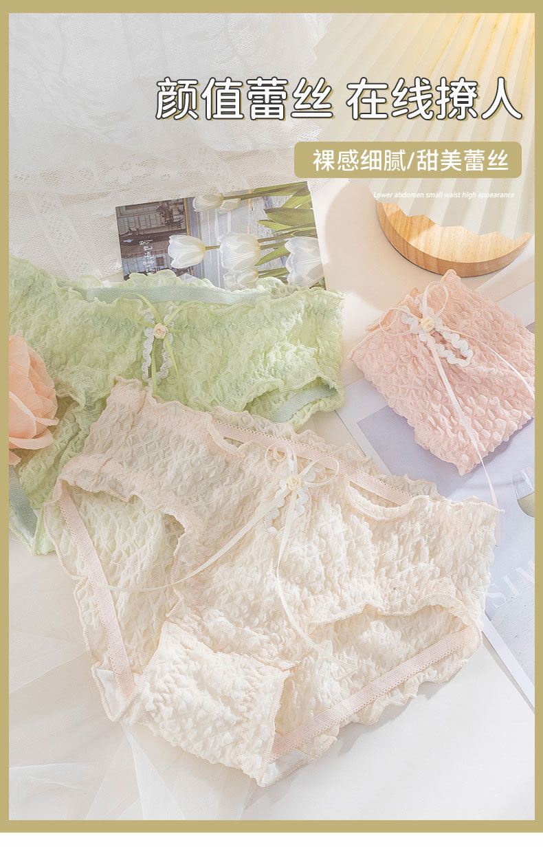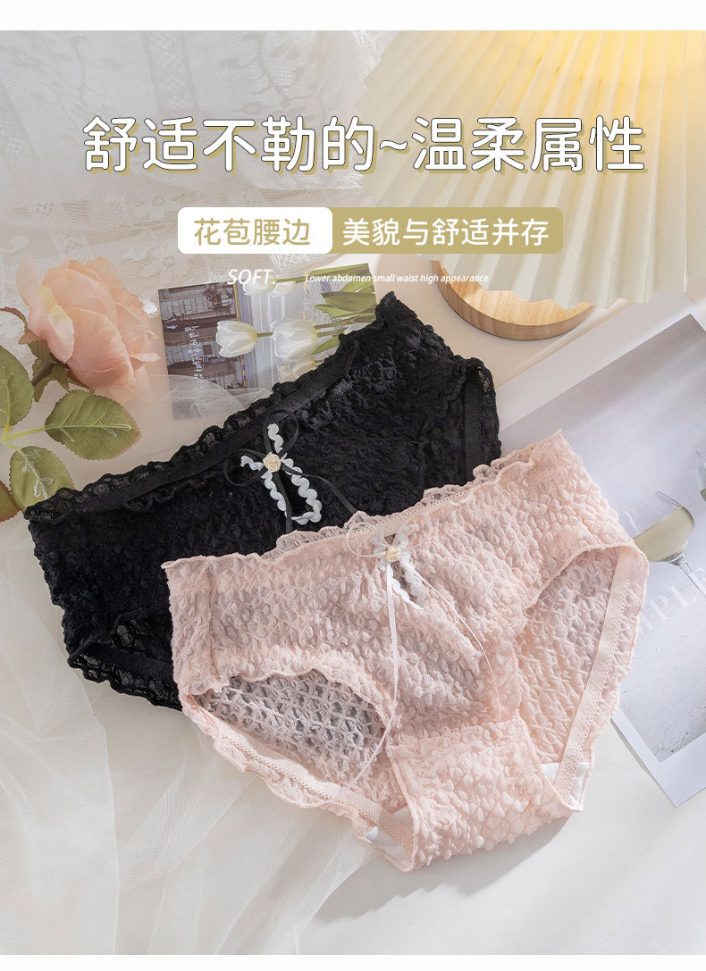 섹시한 레이스 속옷 여성용 미드 웨이스트 코튼 가랑이 일본 패션 순수한 욕망 반투명 어린 소녀 표시가없는 팬티스토어 가기