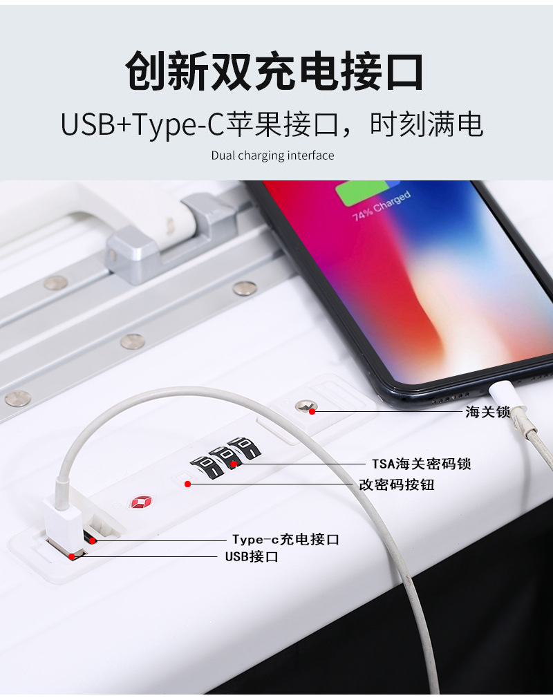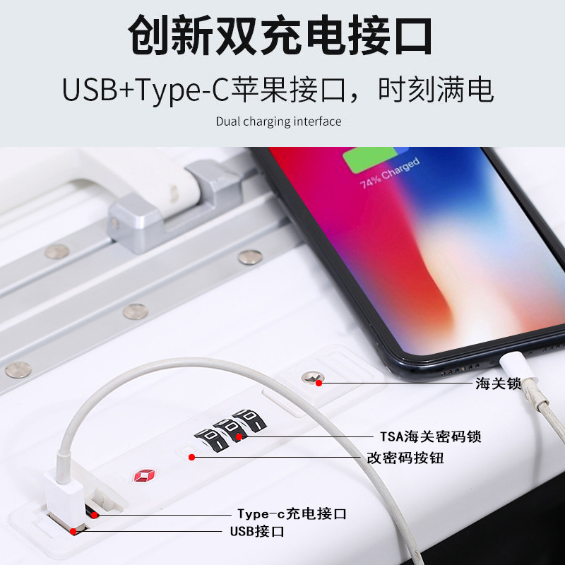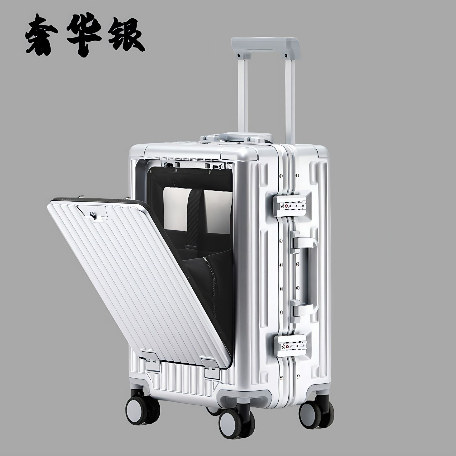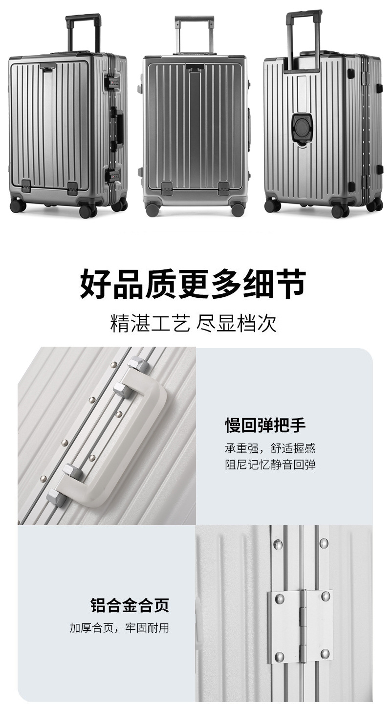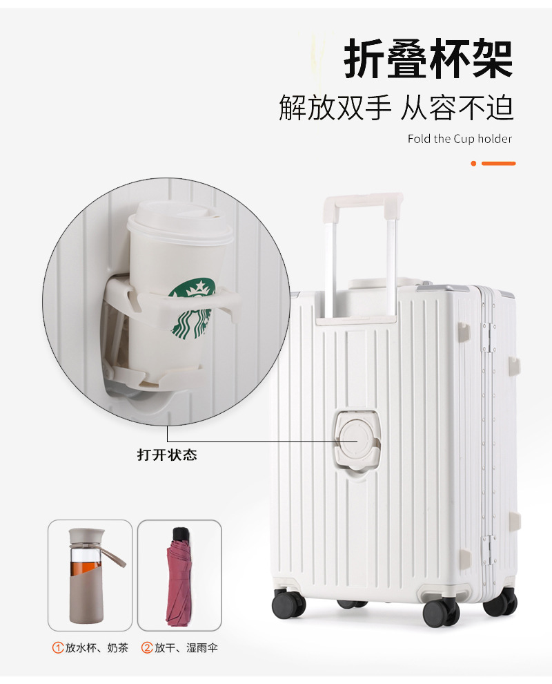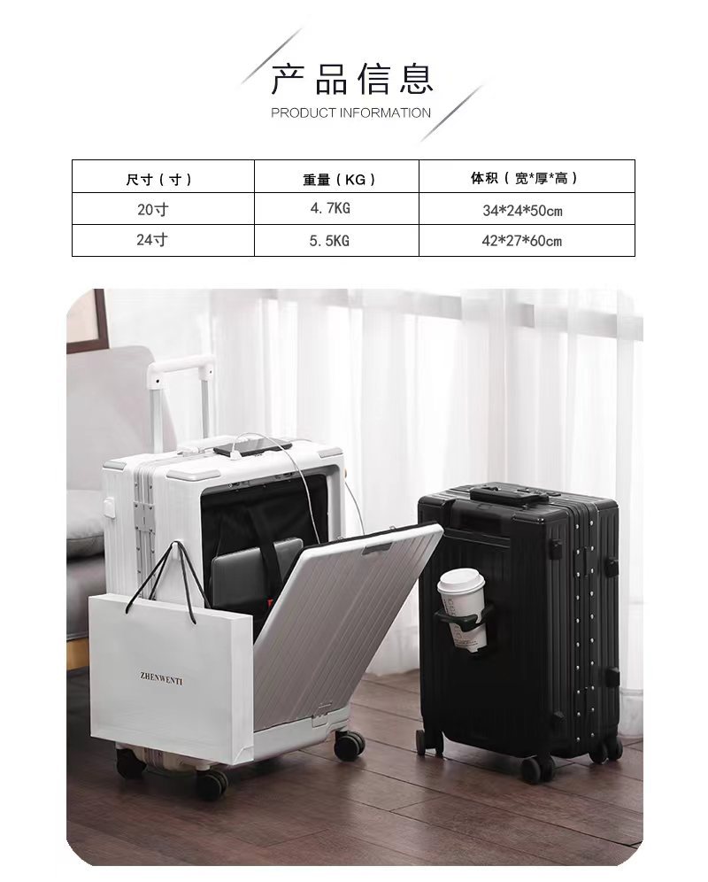 2024 다기능 전면 개폐식 캐리어 USB 충전 트롤리 박스 컵 홀더 여행용 가방 스툴 박스 스마트 충전스토어 가기