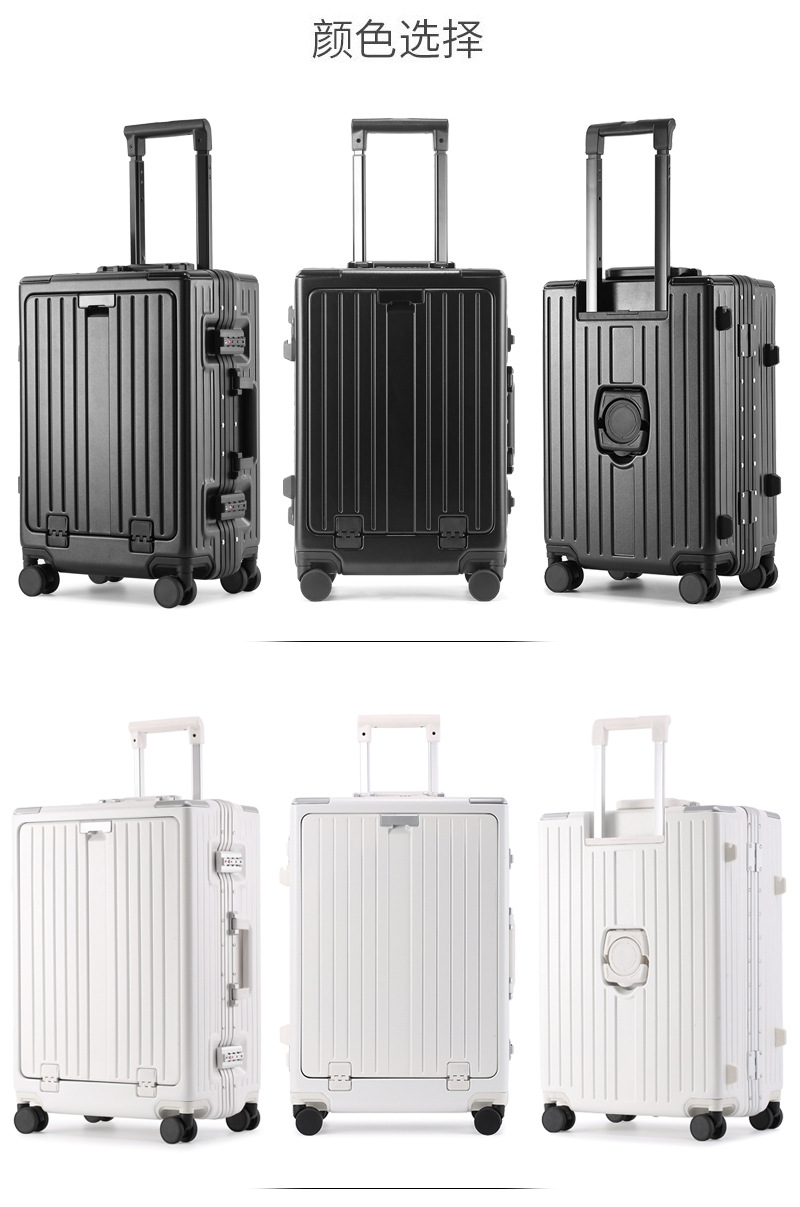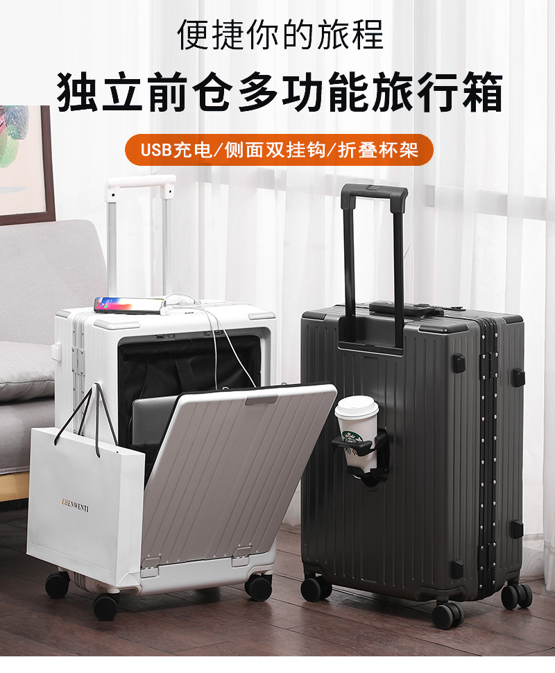 2024 다기능 전면 개폐식 캐리어 USB 충전 트롤리 박스 컵 홀더 여행용 가방 스툴 박스 스마트 충전