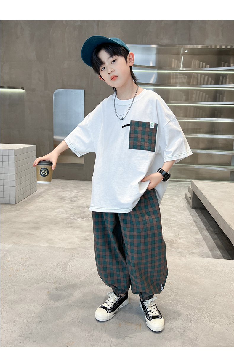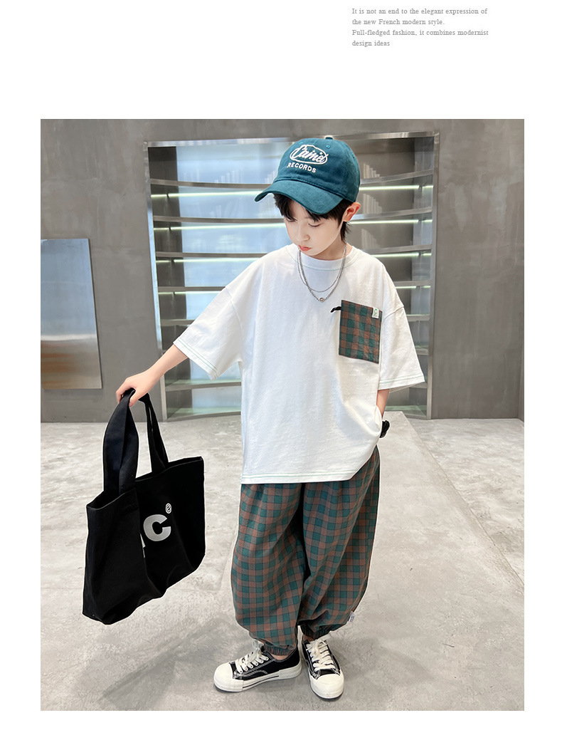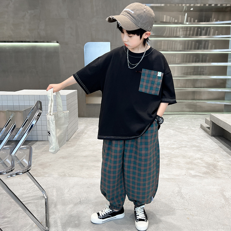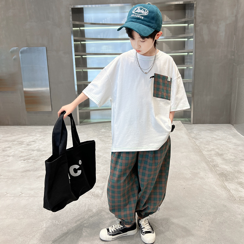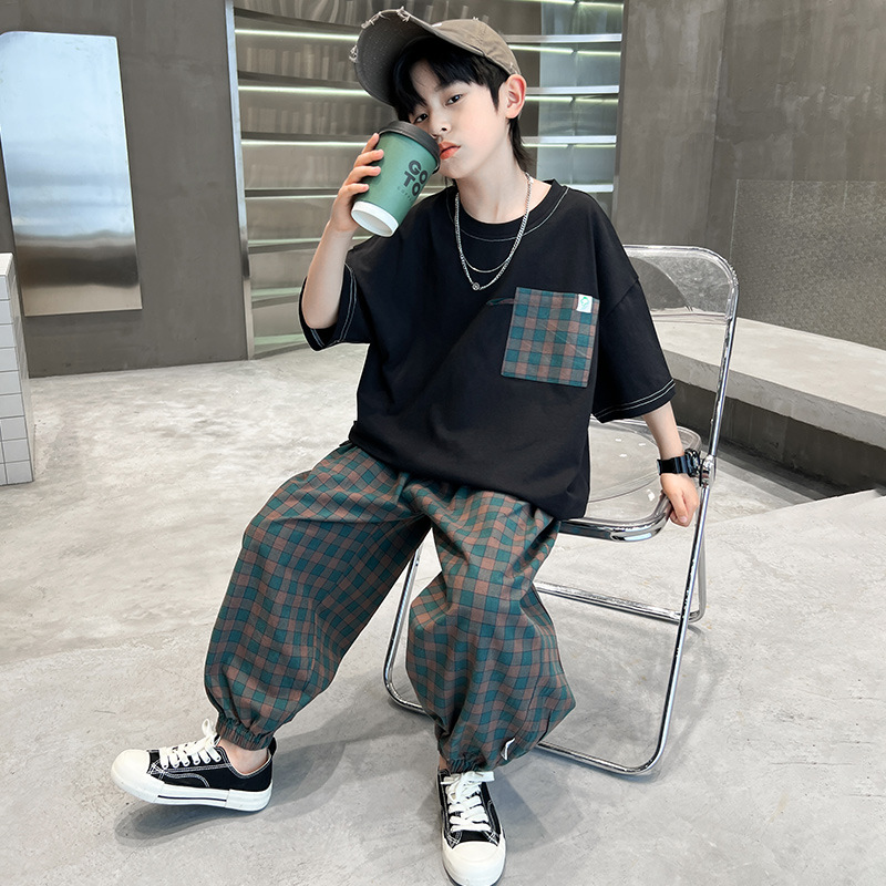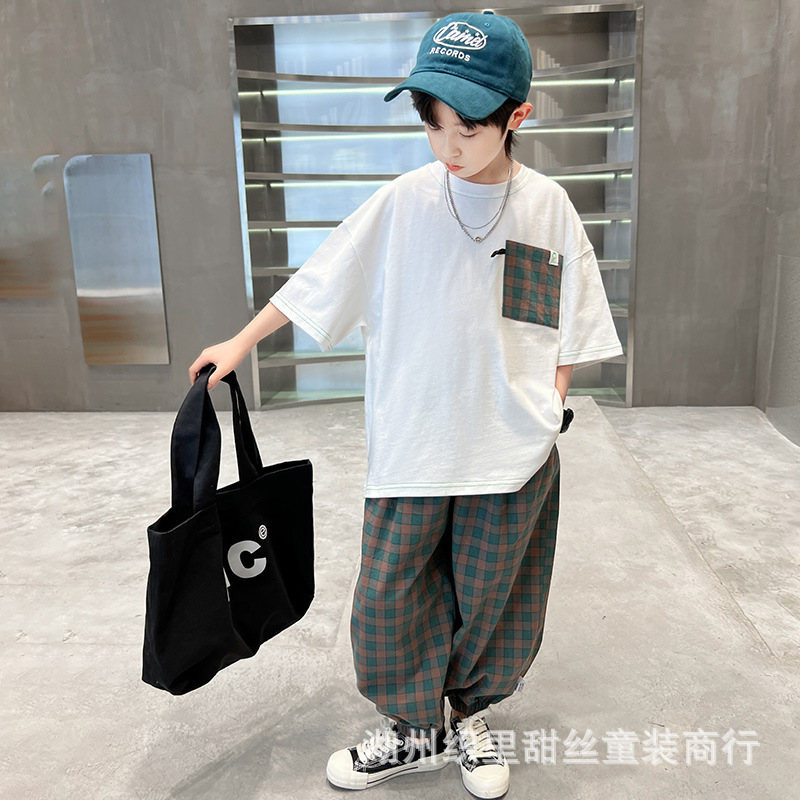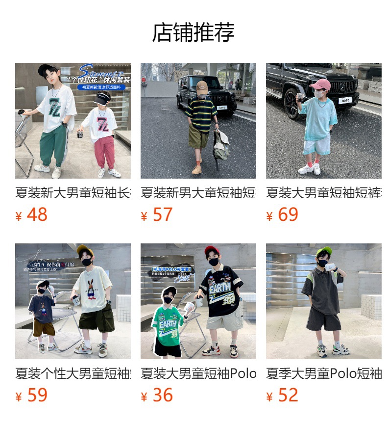 여름 옷 큰 남자의 어린이 반팔 바지 세트 아동 의류 아동 소년 티셔츠 얇은 투피스 세트 유행 멋진 개인화 된 어린이 세트스토어 가기