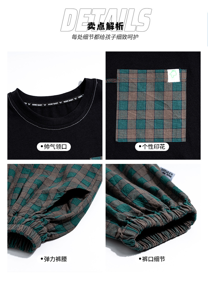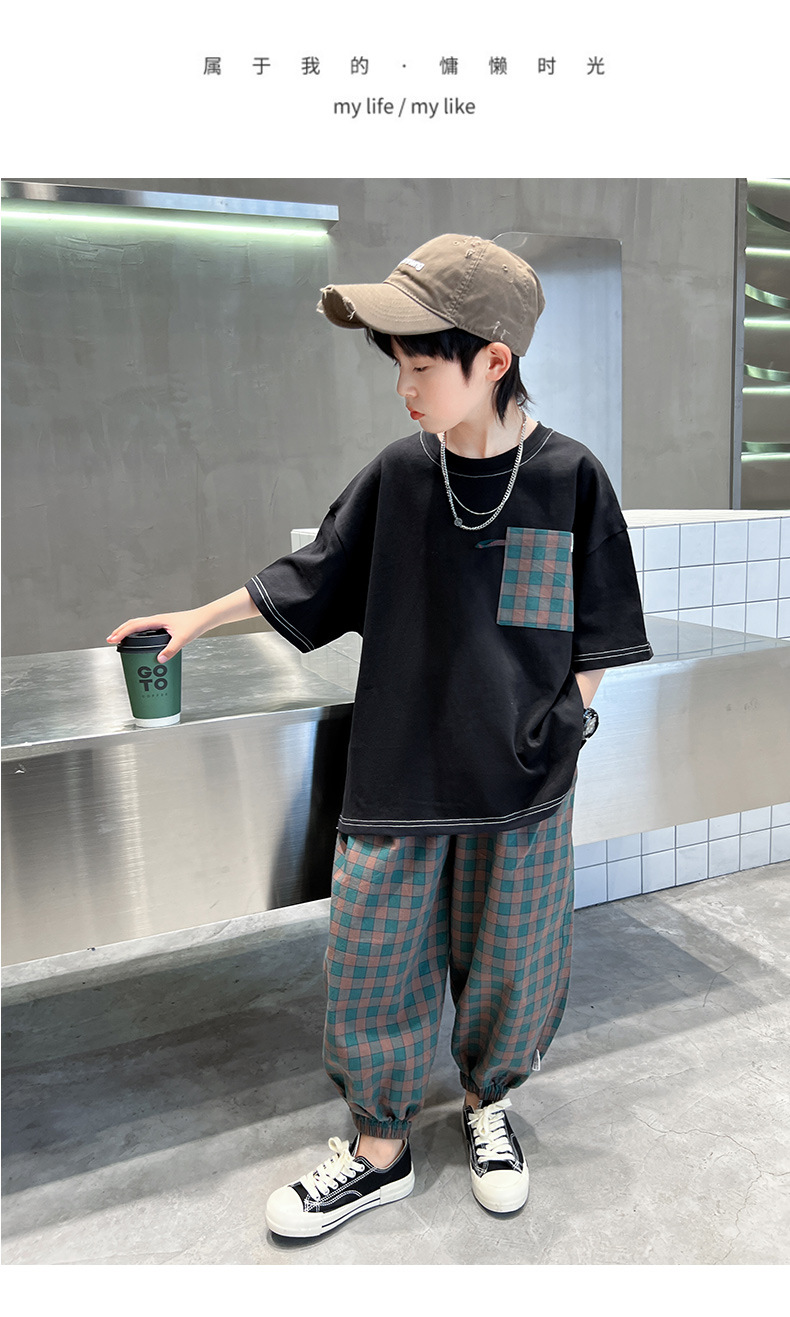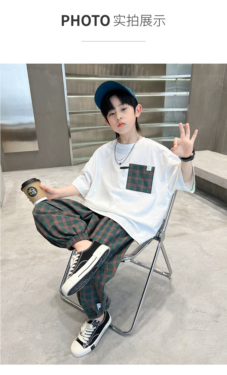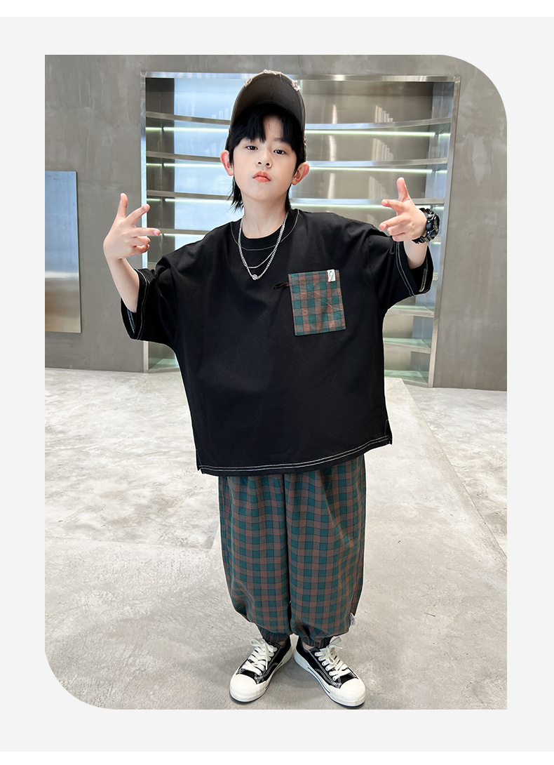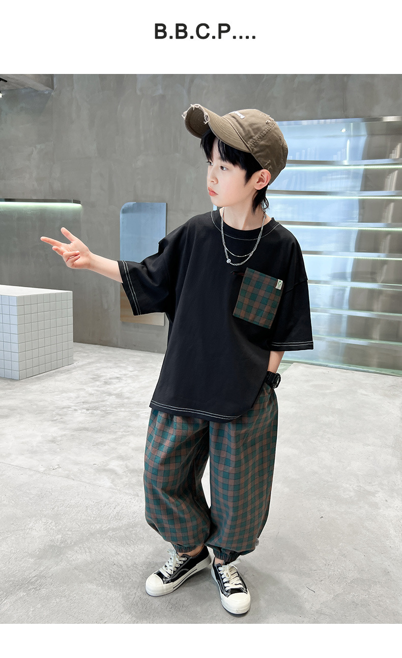 여름 옷 큰 남자의 어린이 반팔 바지 세트 아동 의류 아동 소년 티셔츠 얇은 투피스 세트 유행 멋진 개인화 된 어린이 세트스토어 가기