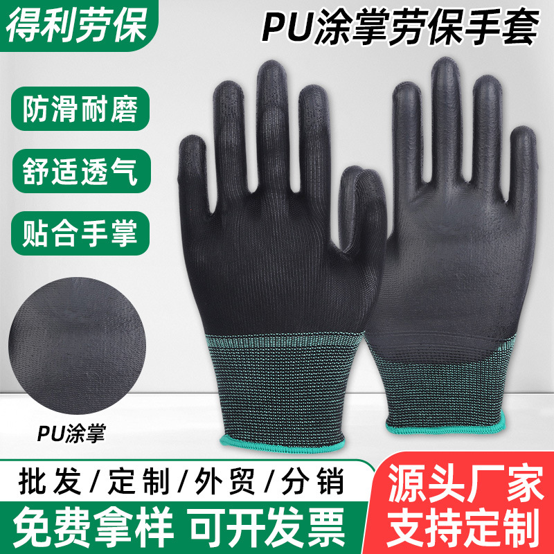 PU 팜 코팅 보호 장갑 공장 블랙 딥 코팅 손바닥 코팅 장갑 공장 취급 내마모성 통기성 장갑