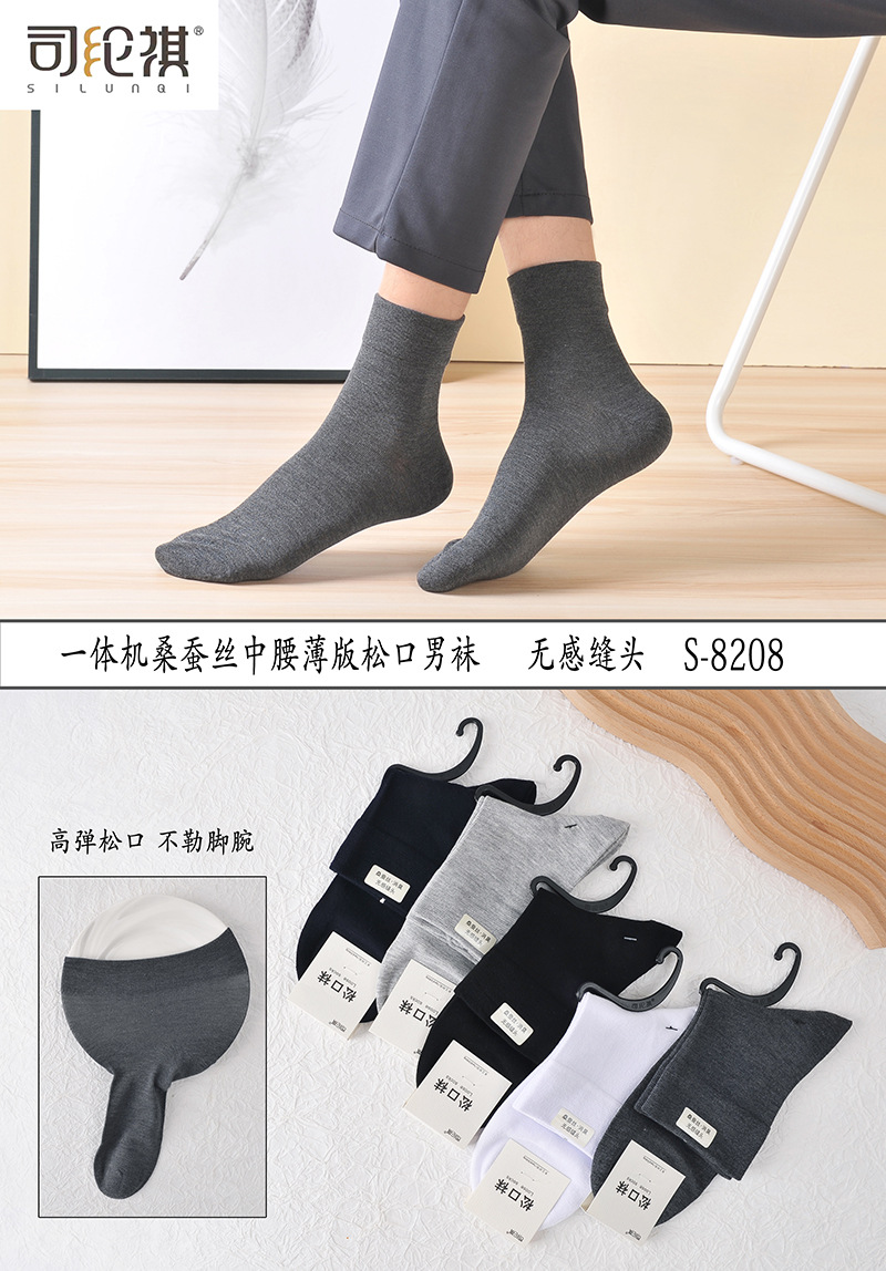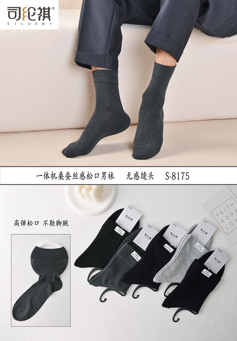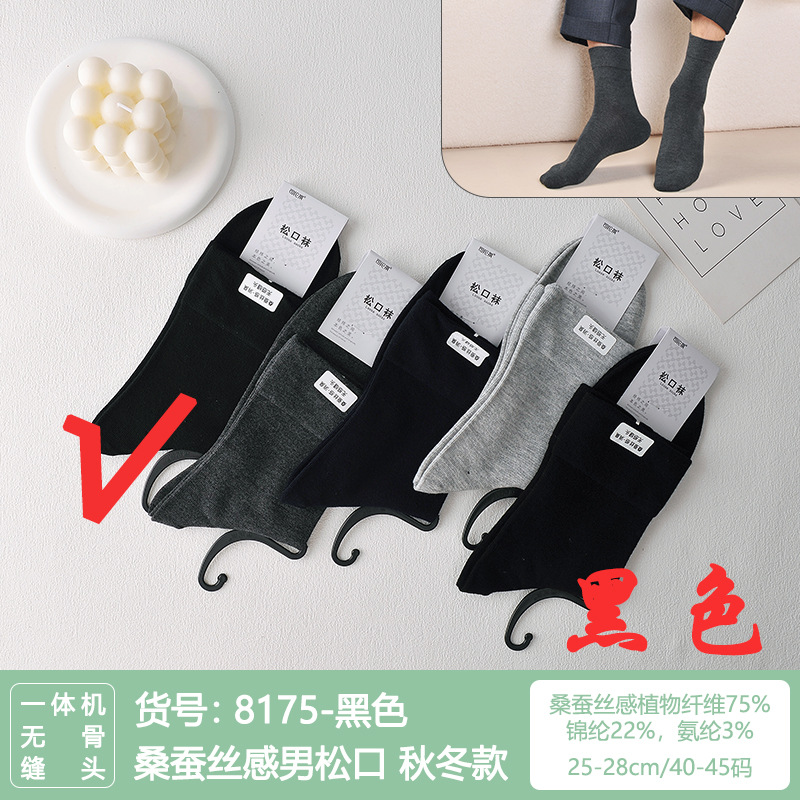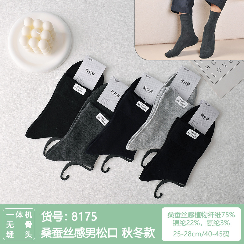 시룬치 25년 가을/겨울 신상품 8175 뽕나무 실크 느낌 남성용 루즈핏 양말 단색 고탄력 발목 조이지 않는 무봉제 양말