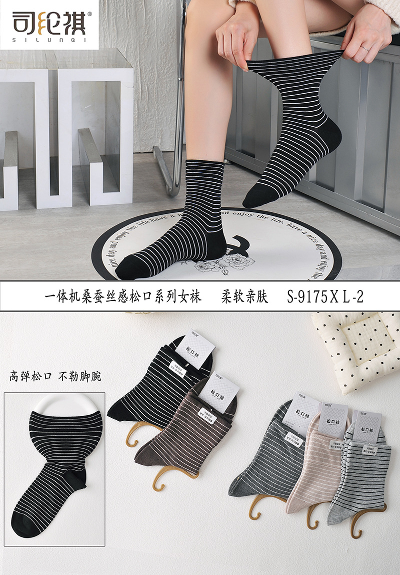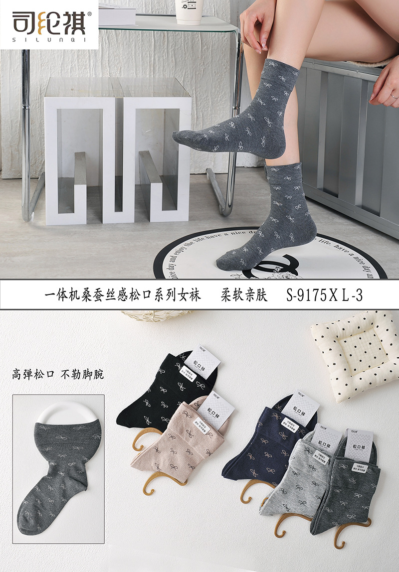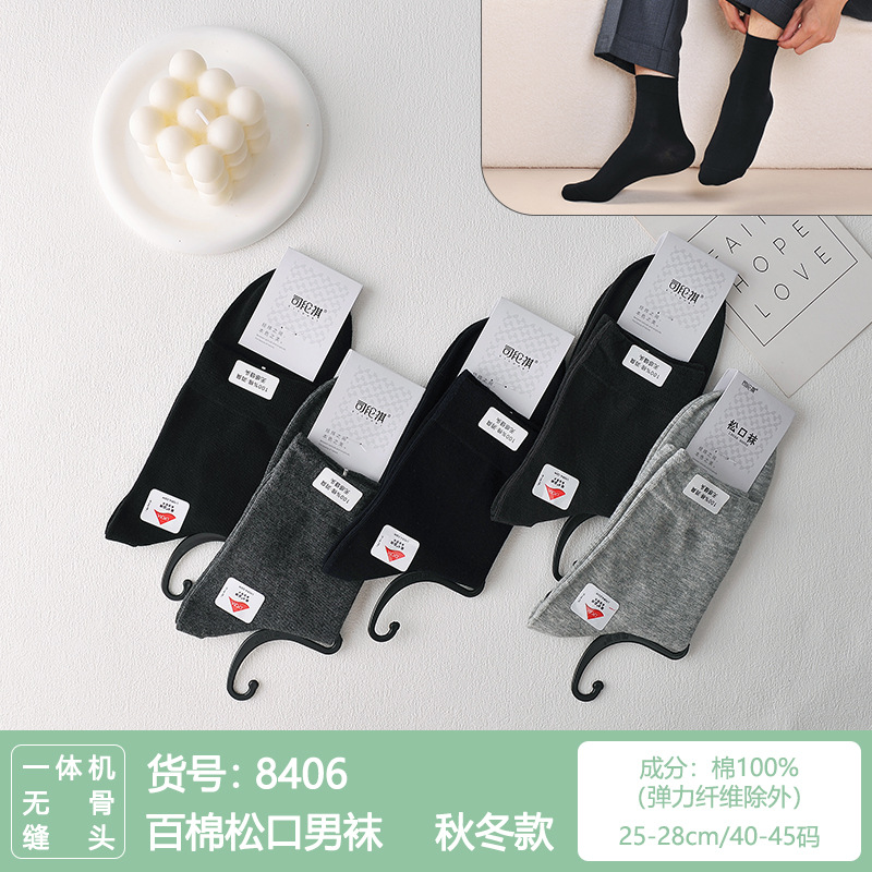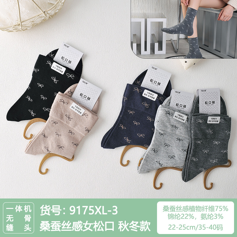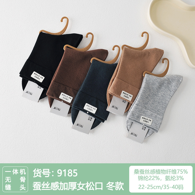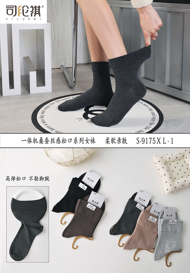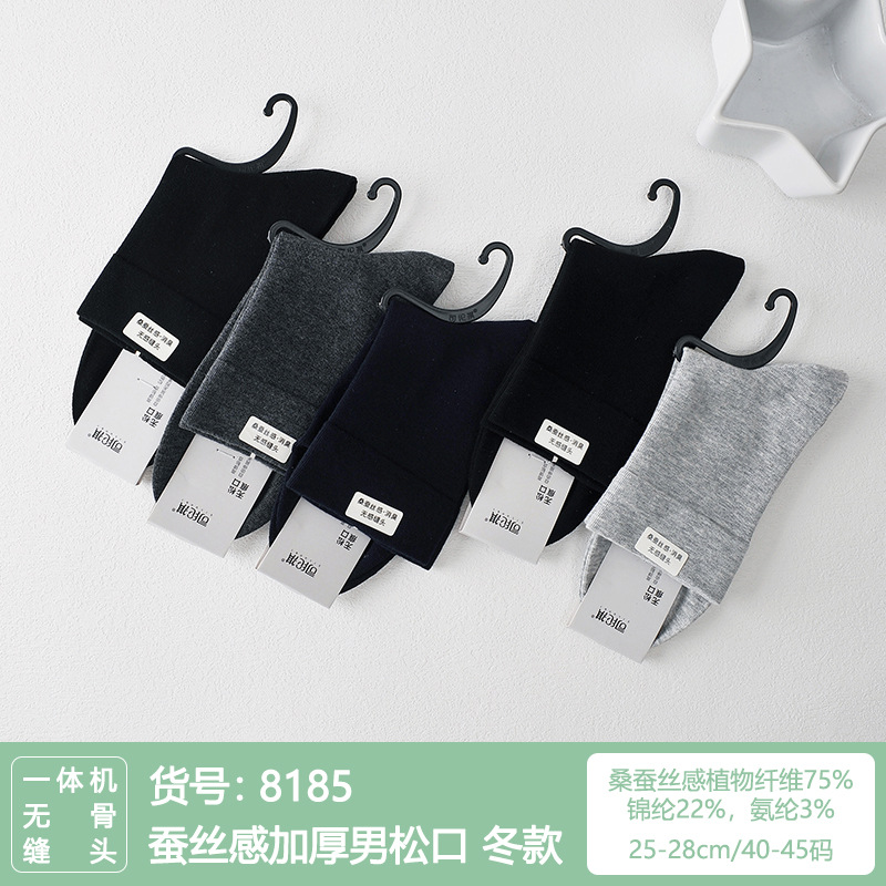 시룬치 25년 가을/겨울 신상품 8175 뽕나무 실크 느낌 남성용 루즈핏 양말 단색 고탄력 발목 조이지 않는 무봉제 양말스토어 가기