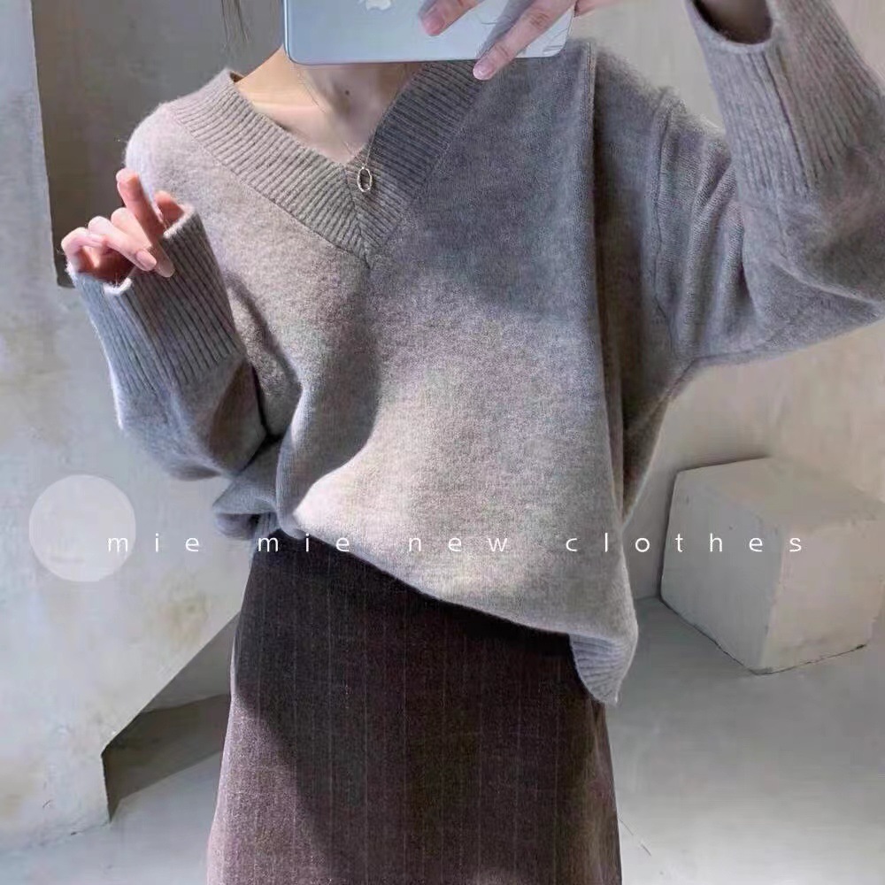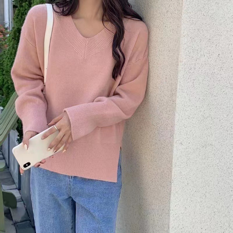 브이넥 스웨터, 가을 겨울 레이지 스타일, 한국 스타일 아우터 니트 풀오버, 여성용 솔리드 컬러 탑, 패셔너블하고 다재다능한 한국 스타일 트렌드스토어 가기
