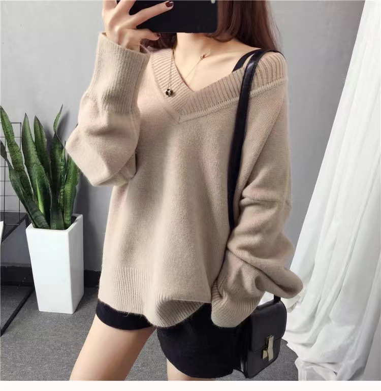 브이넥 스웨터, 가을 겨울 레이지 스타일, 한국 스타일 아우터 니트 풀오버, 여성용 솔리드 컬러 탑, 패셔너블하고 다재다능한 한국 스타일 트렌드