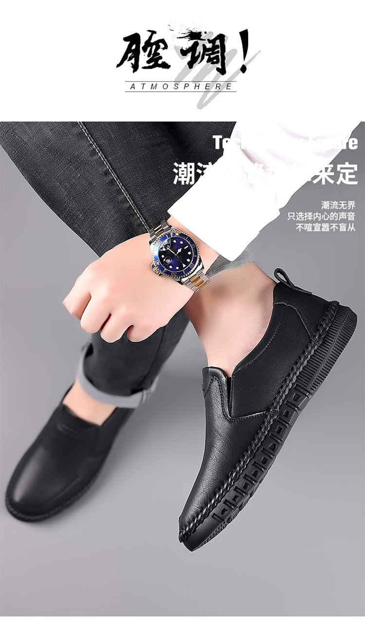 캐주얼 가죽 신발 2023 새로운 비즈니스 신발 슬립온 PU 남성 신발 패션 로우 탑 신발 데일리 하이킹 신발스토어 가기