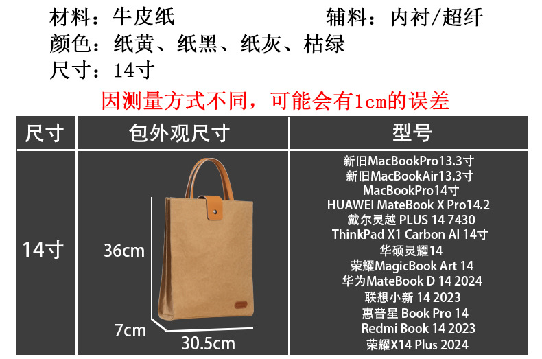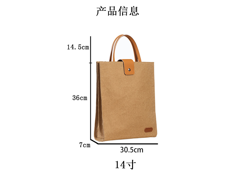공장 직접 판매 크래프트 종이 노트북 슬리브 가방 14inch 컴퓨터 가방 비즈니스 휴대용 보관 가방 내마모성 및 방수스토어 가기