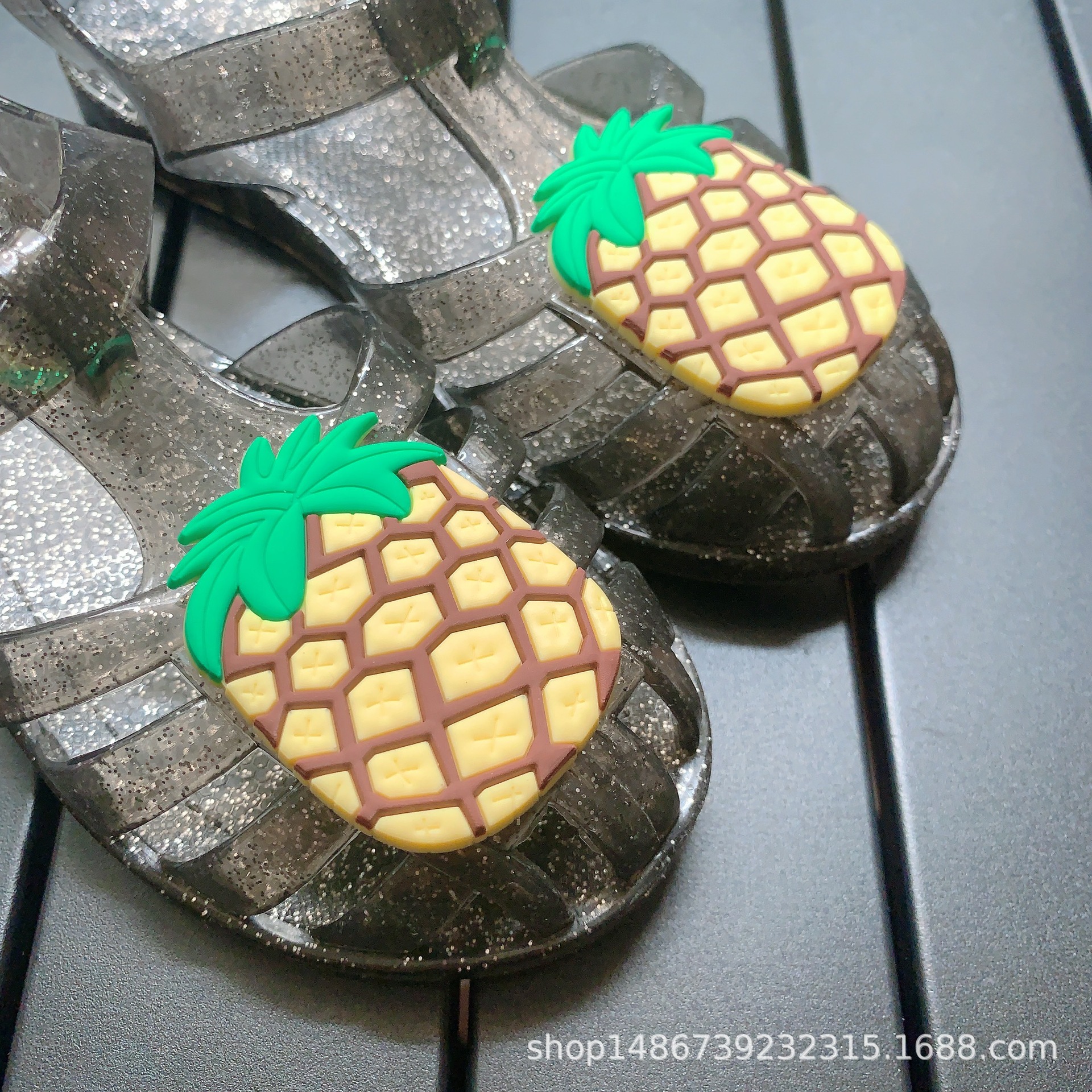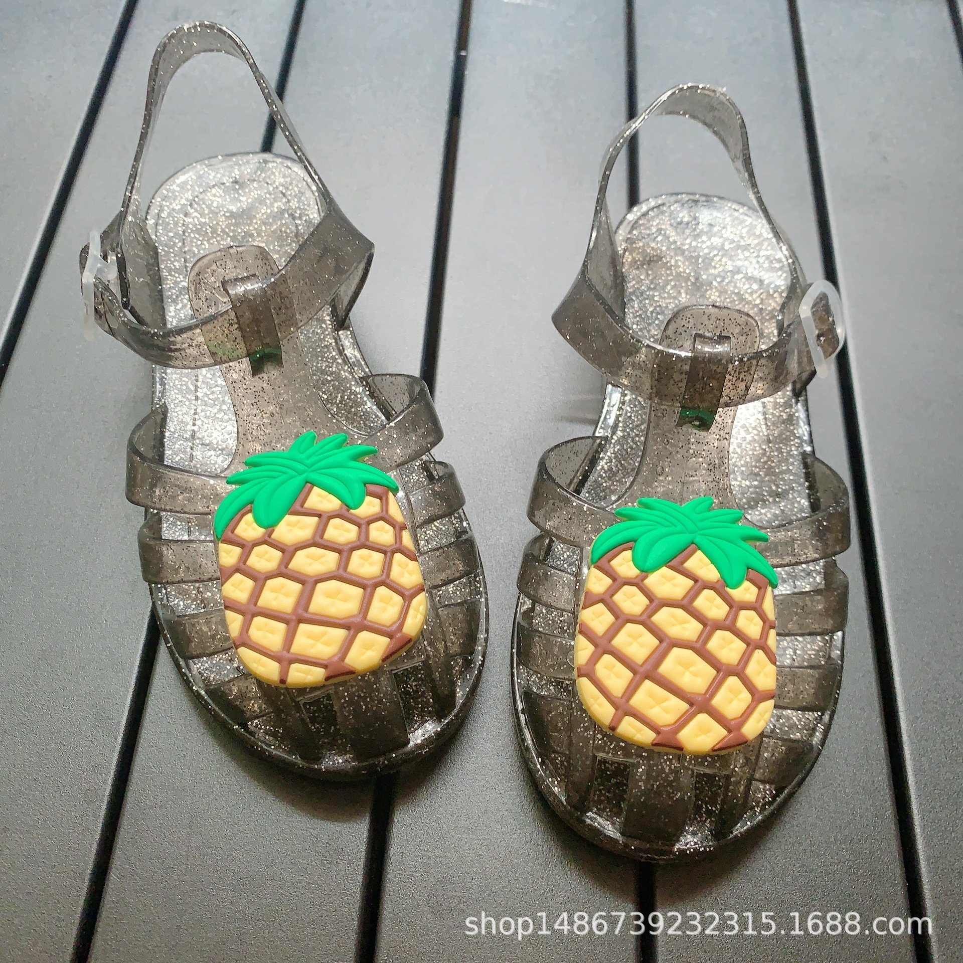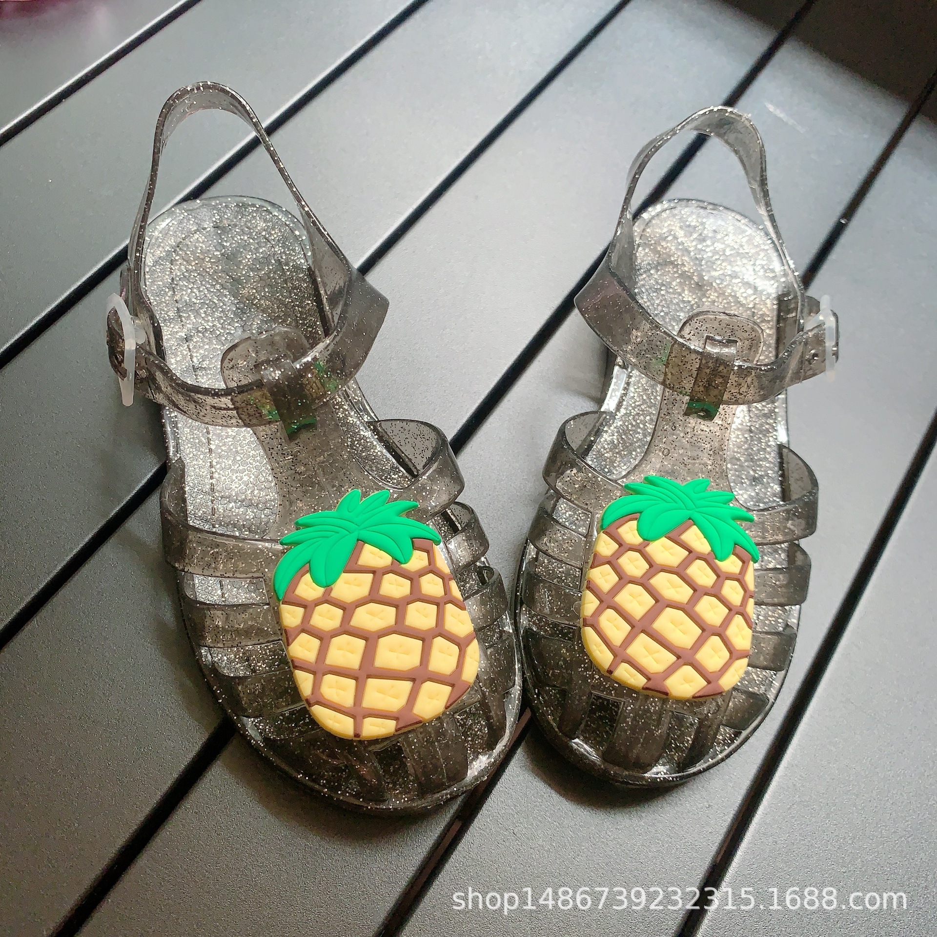 여름 새로운 젤리 샌들 패션 만화 과일 크리스탈 신발 Baotou 아기 샌들 부드러운 바닥 플라스틱 신발 도매