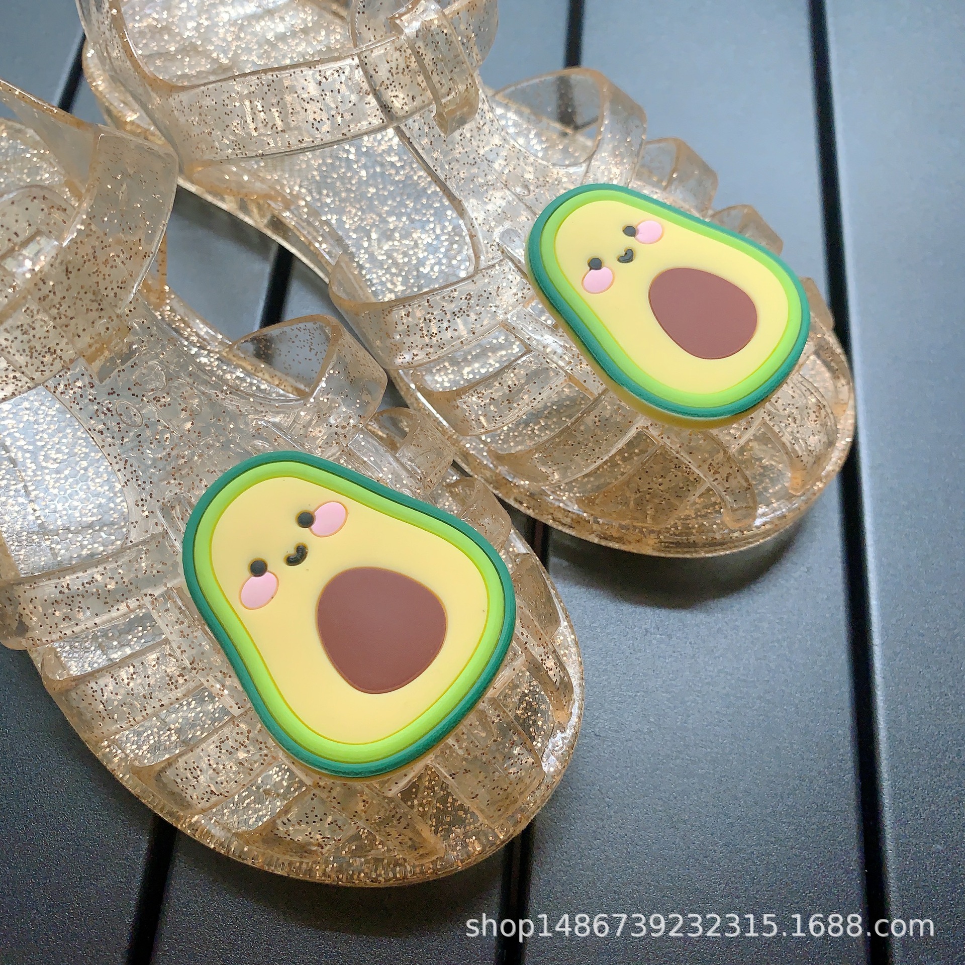 여름 새로운 젤리 샌들 패션 만화 과일 크리스탈 신발 Baotou 아기 샌들 부드러운 바닥 플라스틱 신발 도매스토어 가기