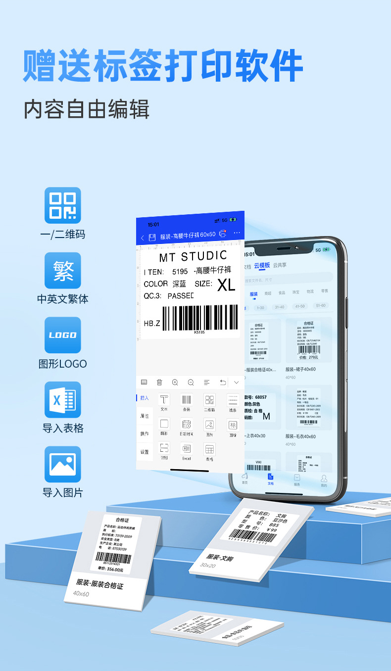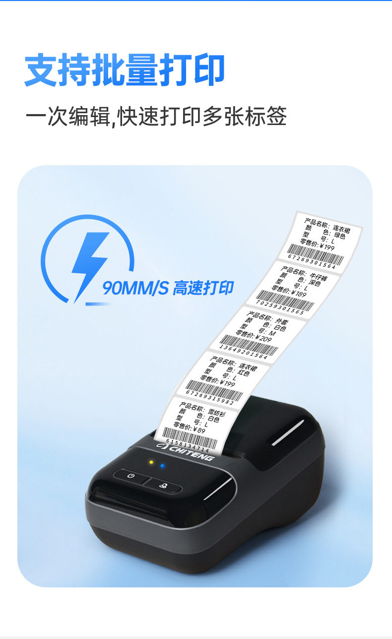 치텡 라벨기 220F 휴대용 미니 홈 라벨 프린터 접착 스티커 블루투스 라벨기