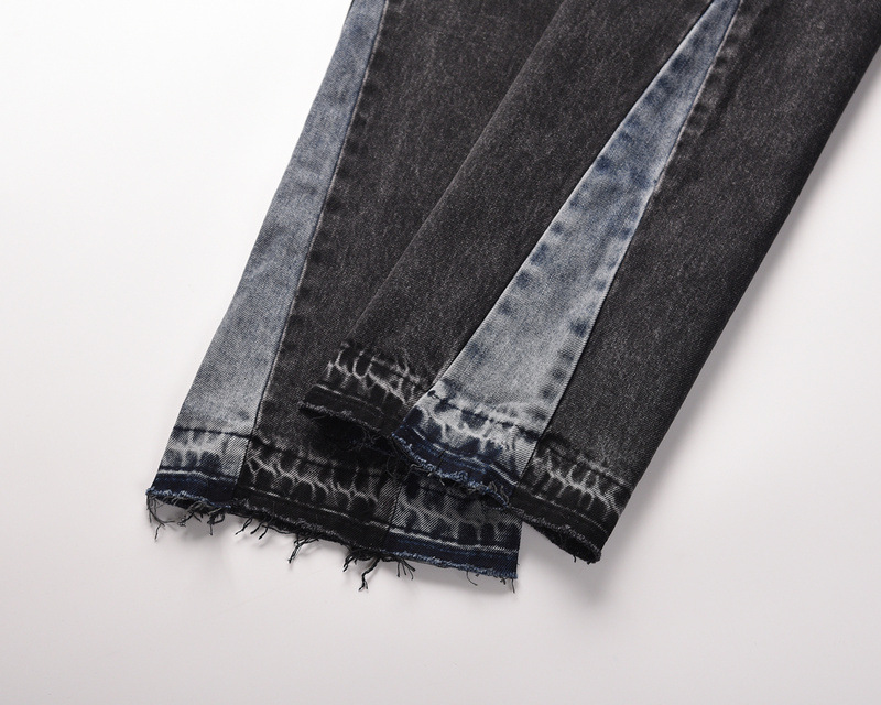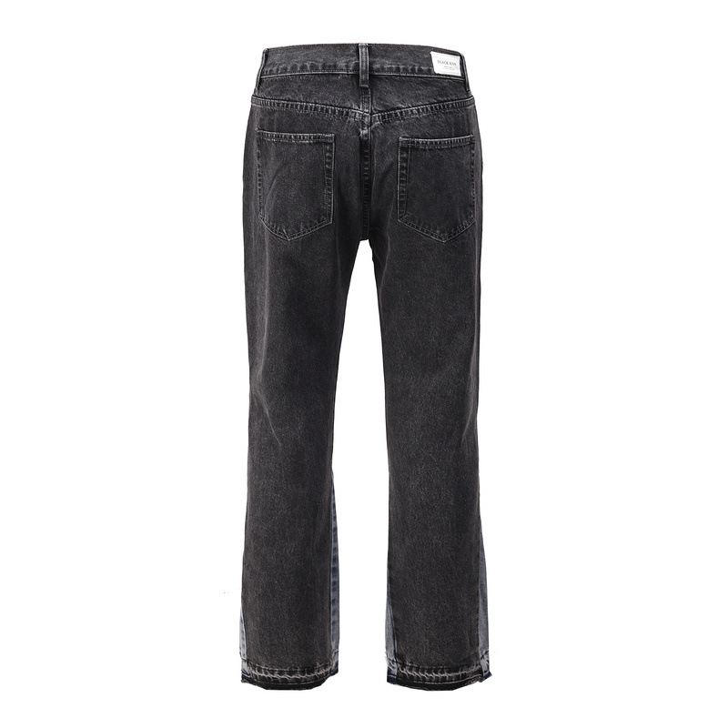유럽과 미국의 하이 스트리트 워터 인 같은 스타일 남성 워싱 바이브 스타일 루즈 스플라이싱 마이크로 플레어 청바지