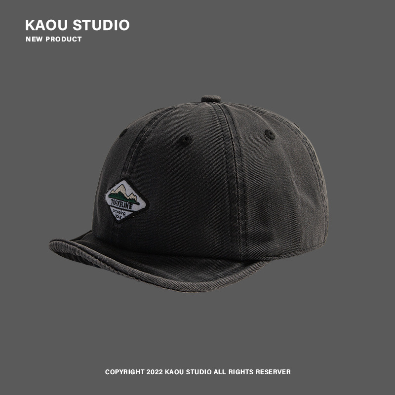 한국식 짧은 챙 모자 남성용 워싱 데님 부드러운 챙 모자 여성용 일본식 구식 테이프 큰 머리 야구 모자