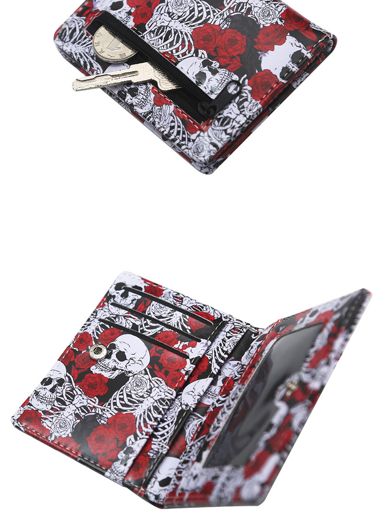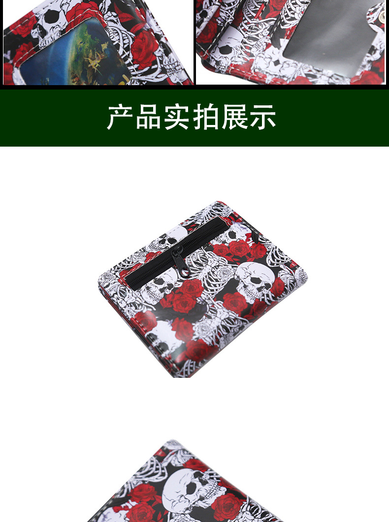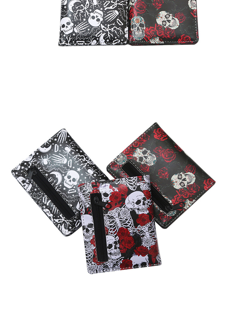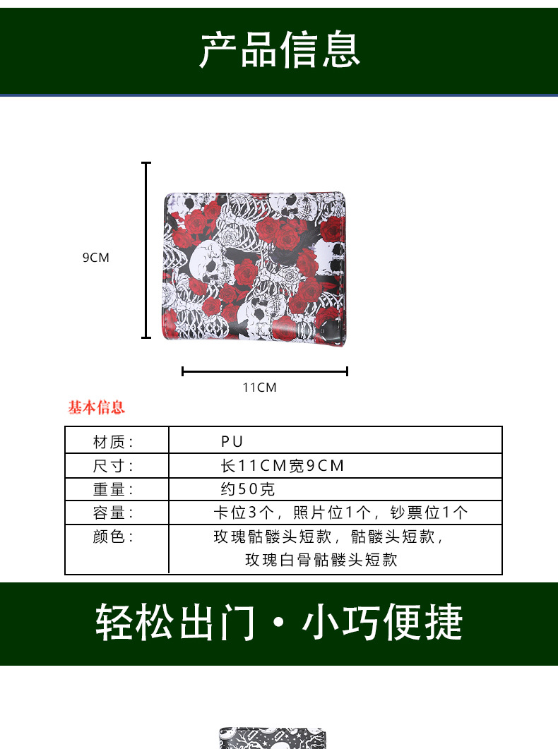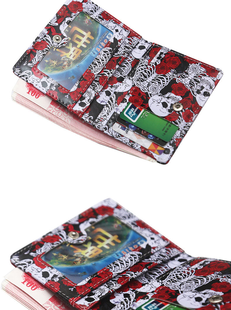크로스 보더 새 지갑 컬러 해골 짧은 지갑 빈티지 해골 프린트 여성용 지퍼 동전 지갑스토어 가기