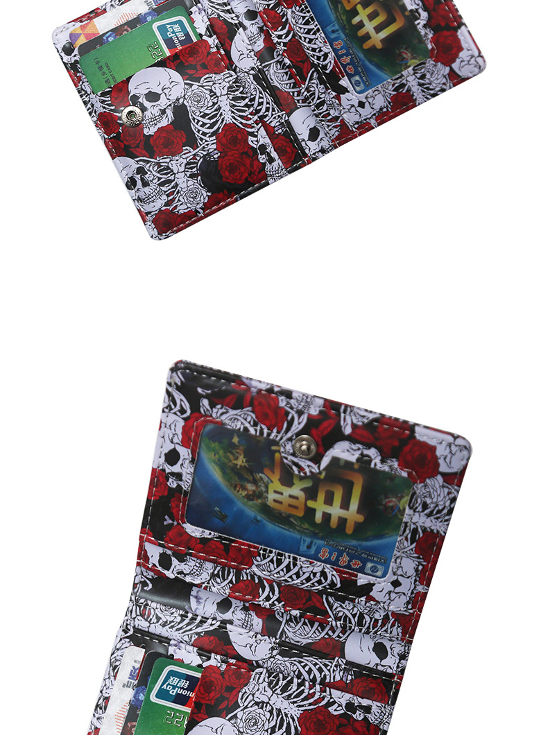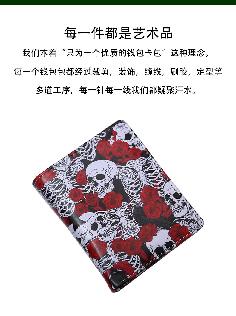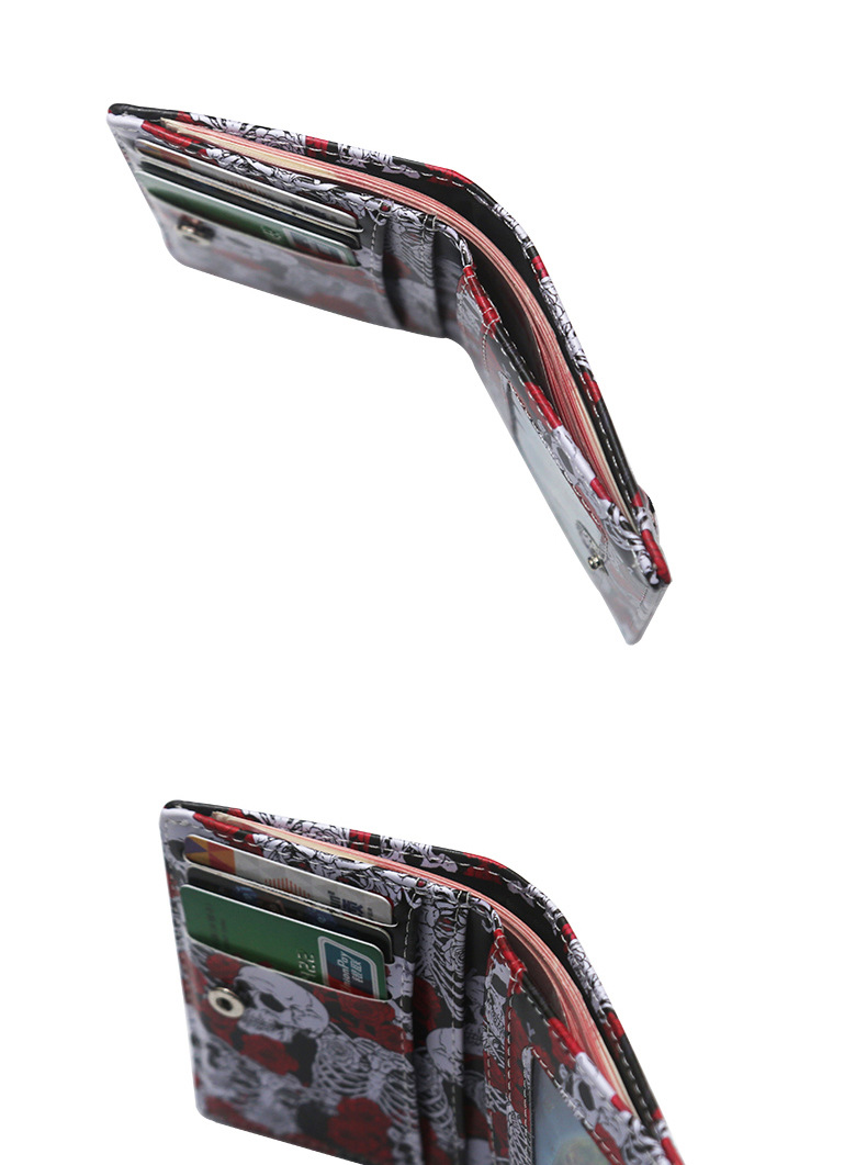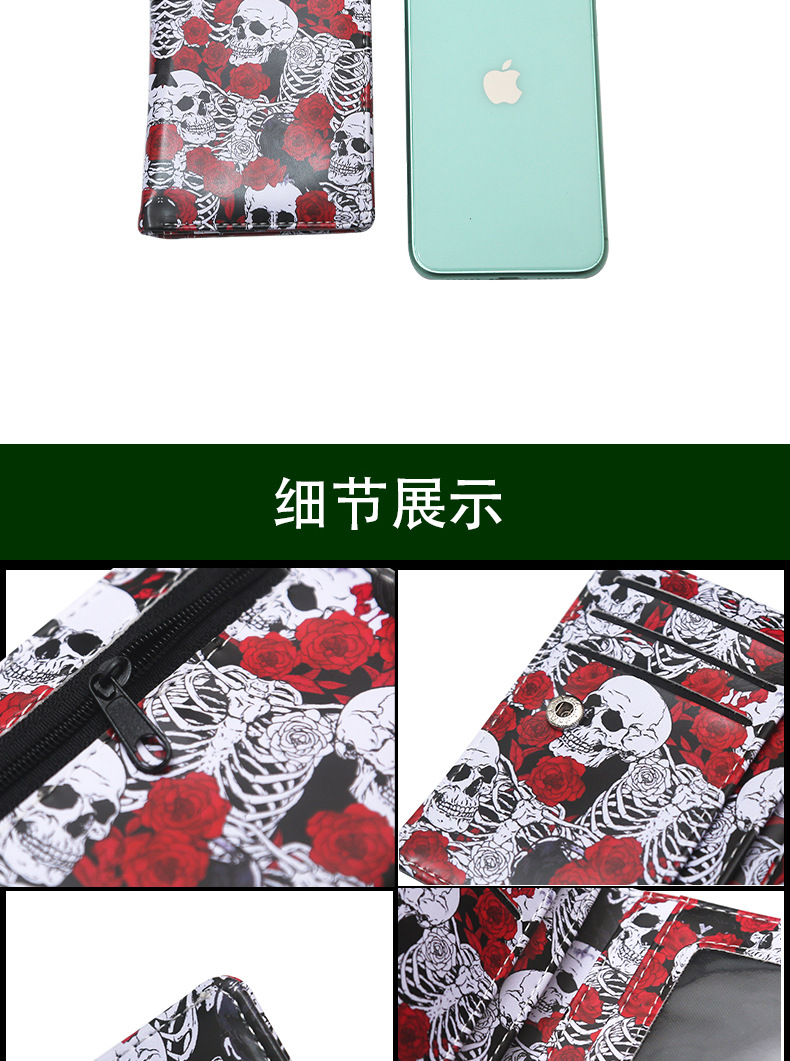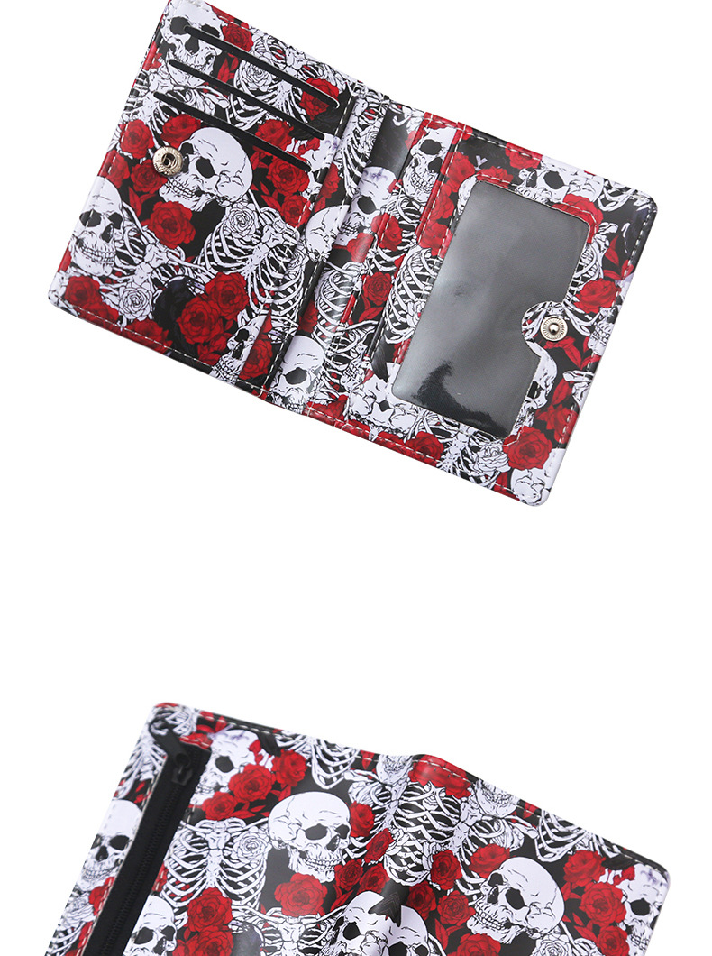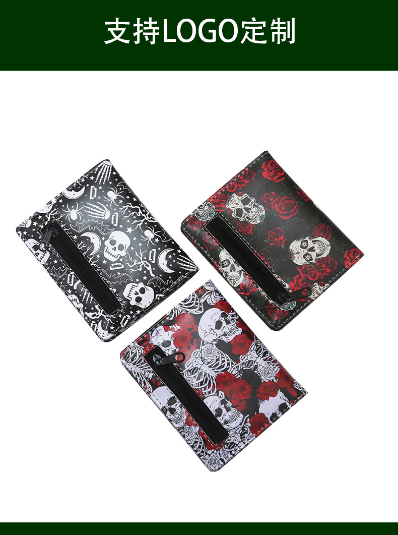 크로스 보더 새 지갑 컬러 해골 짧은 지갑 빈티지 해골 프린트 여성용 지퍼 동전 지갑스토어 가기